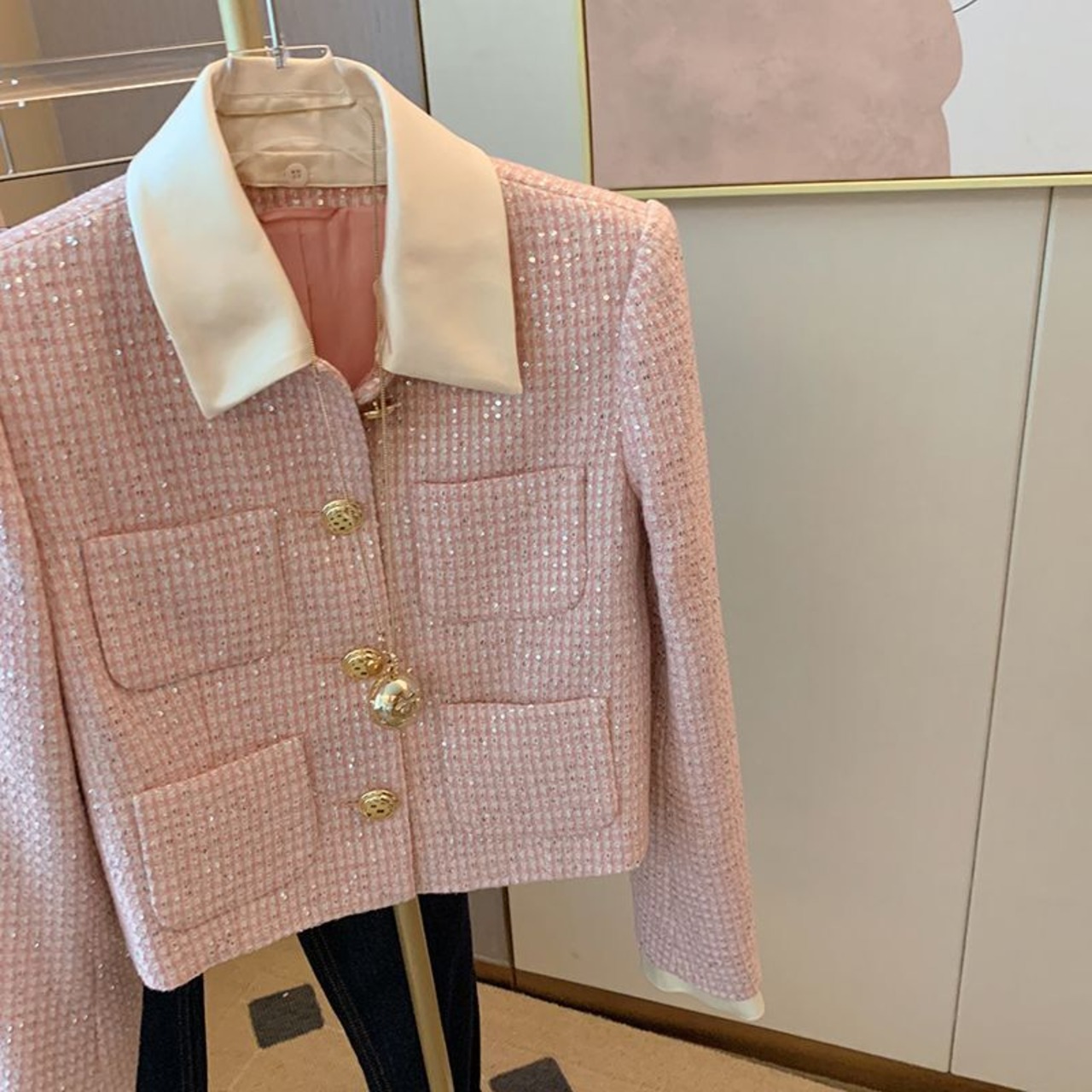 Nomikuma スパンコールショート女性 Coay ヒットカラーターンダウン襟長袖ジャケット 2022 秋生き抜くトップス ロング オータム 秋物 kor55898140071