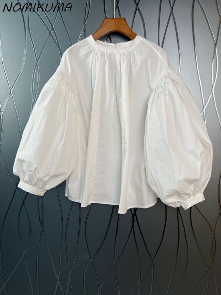 Nomikuma 2022 秋ブラウス女性ランタンスリーブ O ネックプルオーバートップス因果甘い人形シャツデ 大人ガーリー スウィート キュート カジュアル オータム 秋物 Oネック kor80116993440