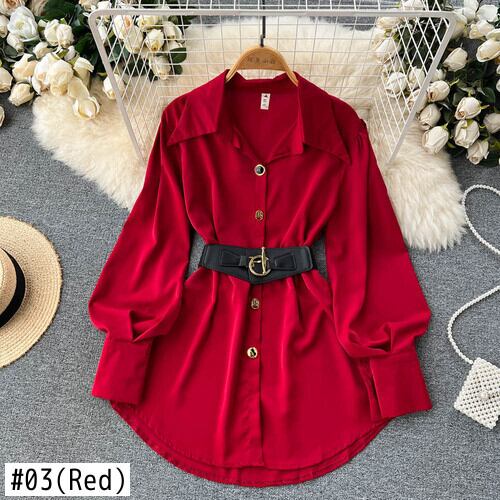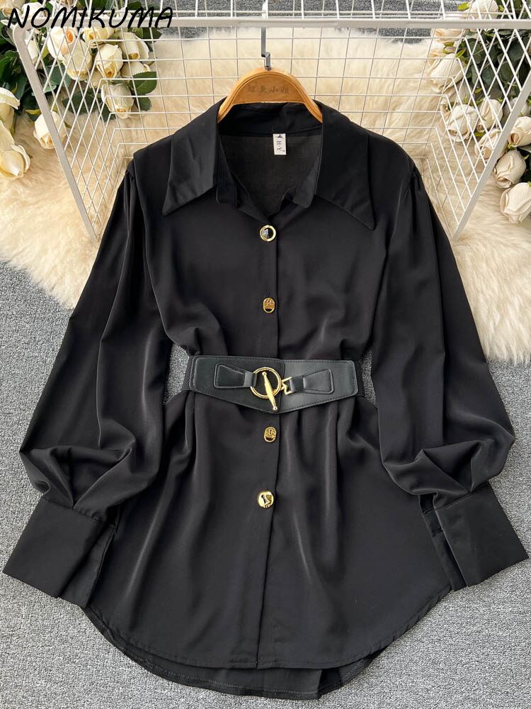 ノミクマ ベルト スリムウエスト レディース ブラウス ランタンスリーブ ターンダウンカラー 2022年秋 トップス オータム 秋物 ハーネス kor26634726132