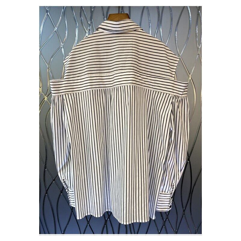 Nomikuma ストライプ女性ブラウスセクシーなストラップレス長袖シャツ因果 2022 秋のシックな 3D 花 Feminima ロング オータム 秋物 フラワーデザイン kor83880742648