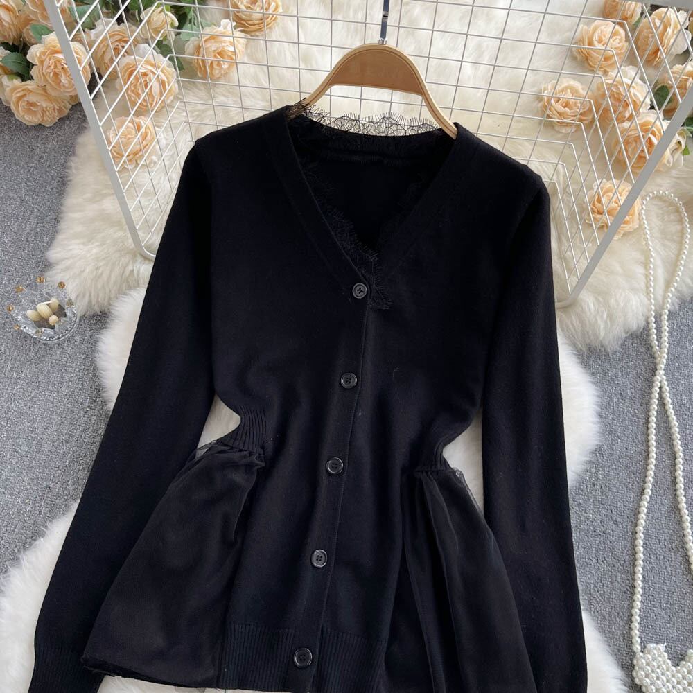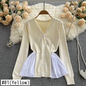 Nomikuma ヒットカラー長袖 Tシャツ女性秋メッシュパッチワーク Tシャツトップ 2022 V ネックスタイルグラフィック Tシャツ ロング オータム 秋物 Vネック kor14621456905