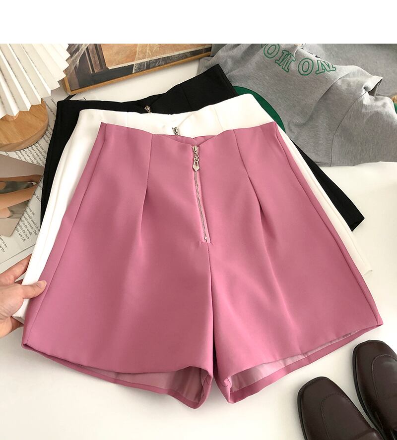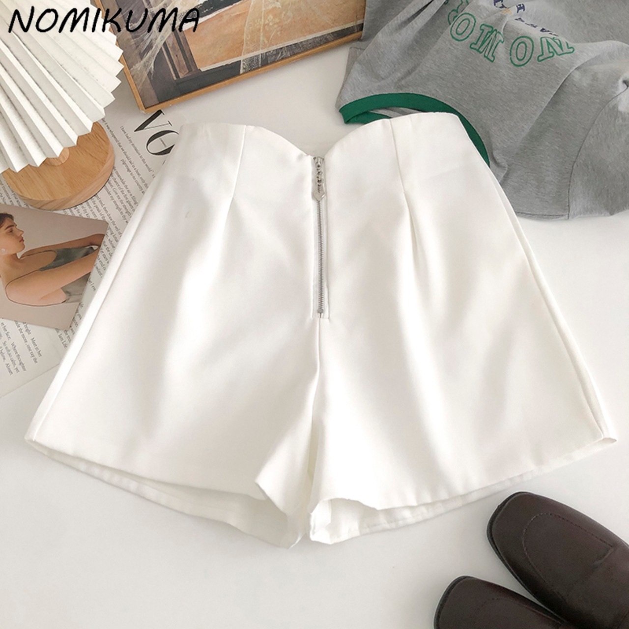 ノミクマ イレギュラーファスナー ウエスト因果 ワイドレッグショーツ レディース 2022 夏 ショート 無地 ボトムス ブルマー ワイドパンツ ソリッドカラー kor99026379574