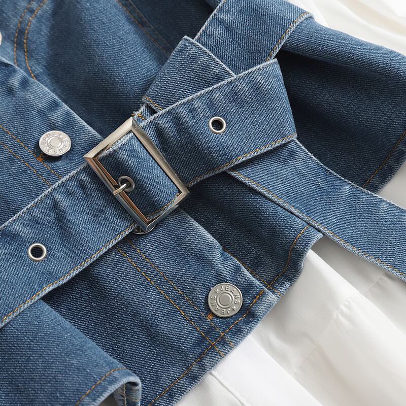 Nomikuma 2 点セットレディース衣装長袖シングルブレストブラウスドレス + ベルト Slimw Aist Demin Sling ベスト 2022 秋 ロング オータム 秋物 ハーネス kor88630665487