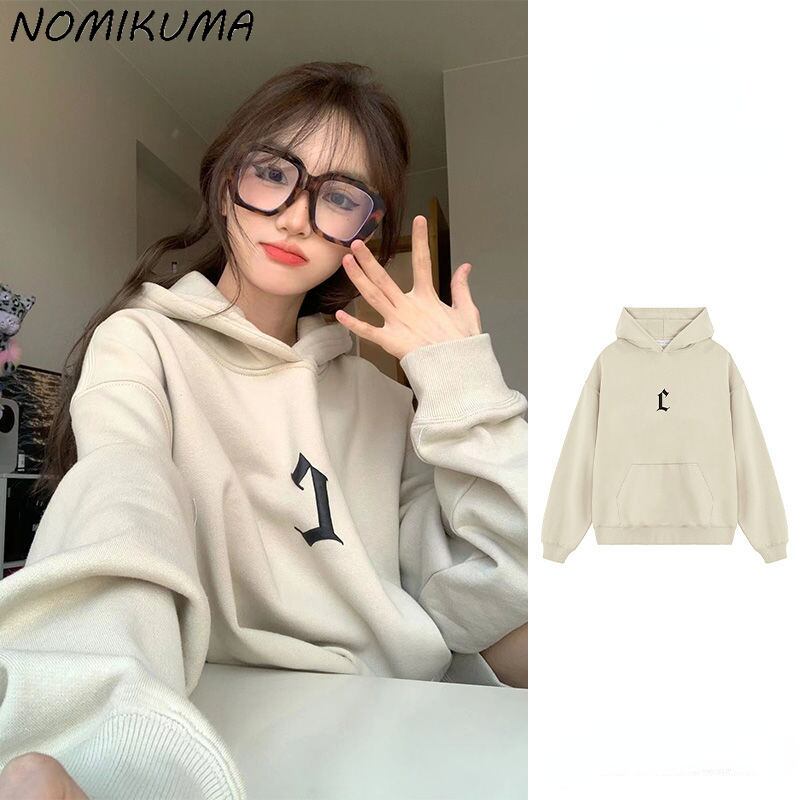 Nomikuma レタープリントフード付きトレーナーコート女性長袖女性パーカー因果 2022 秋のプルオーバージャンパー ロング オータム 秋物 kor38825685993