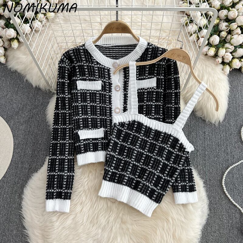 Nomikuma 2022 秋のヒットカラー O ネックニットカーディガン女性因果セーターコートトップス + ベーシックスリングベスト 2 ピース オータム 秋物 Oネック kor63711347753