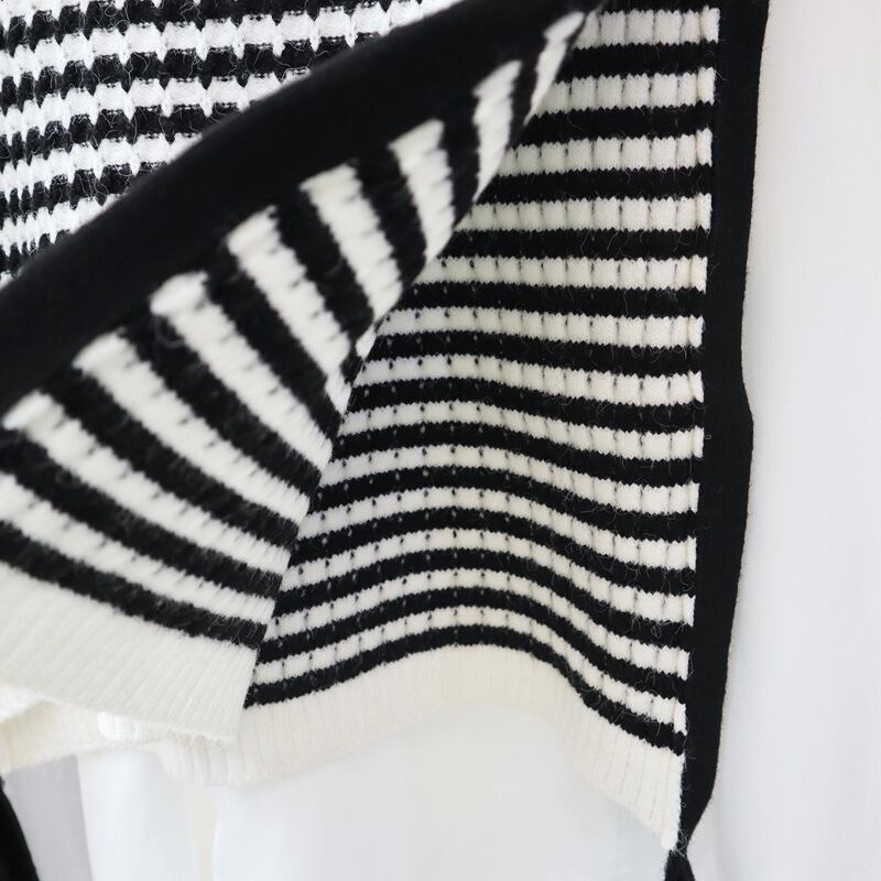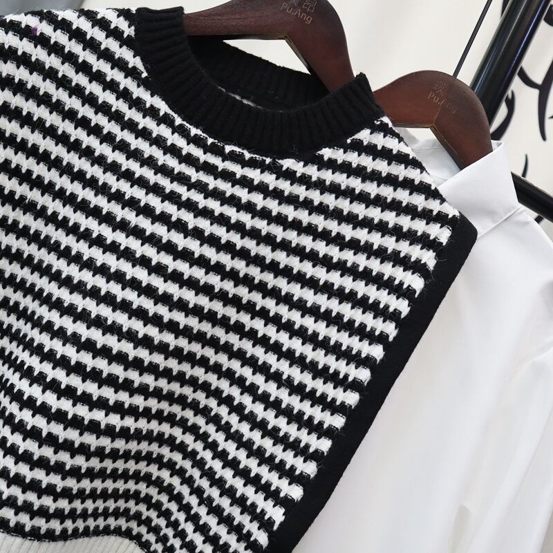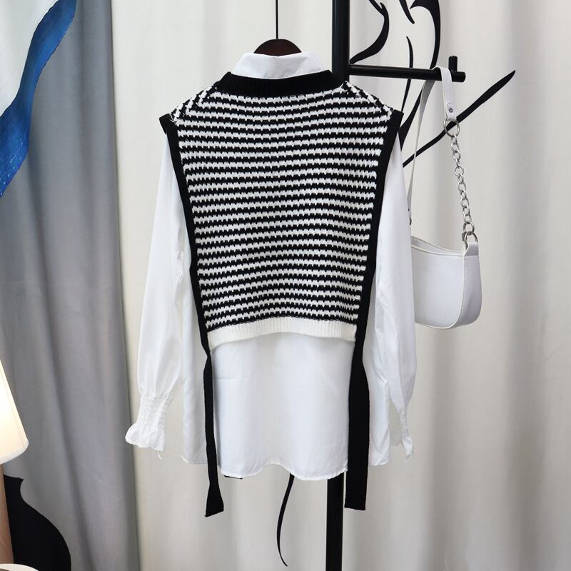 Nomikuma 2022 秋冬因果女性 Stripedknitwear ベストセット + 長袖無地ベーシックブラウスシャツ 2 ピーススーツ ロング オータム 秋物 ウィンター 冬物 ストライプ ソリッドカラー kor10359448501