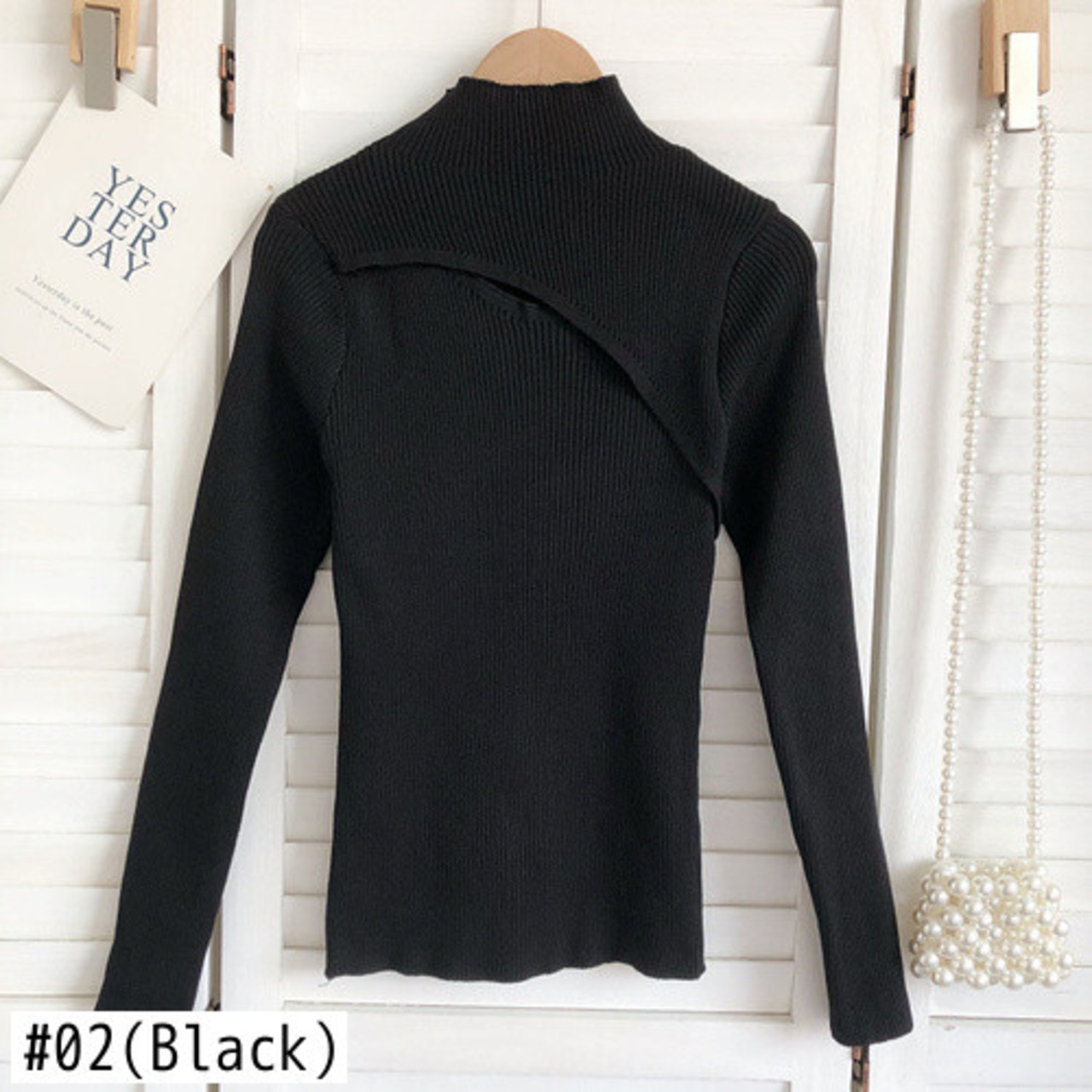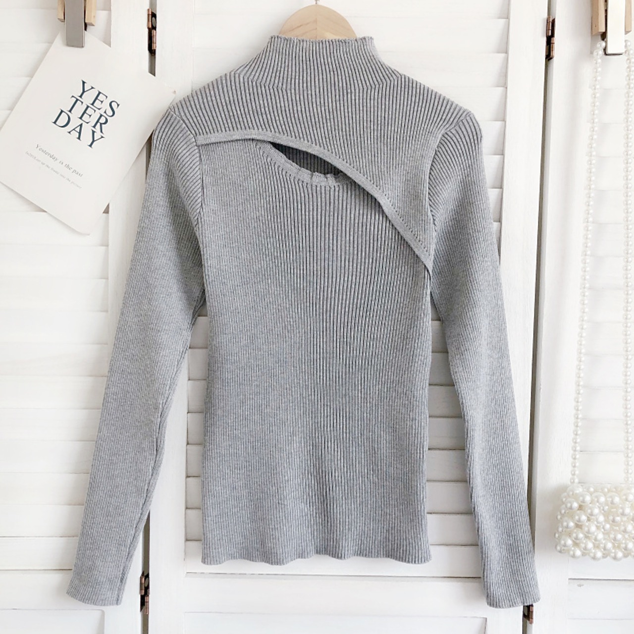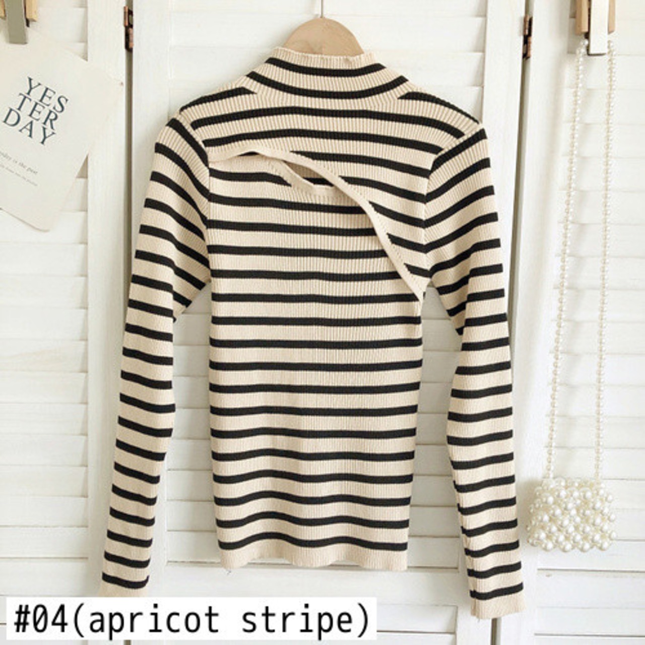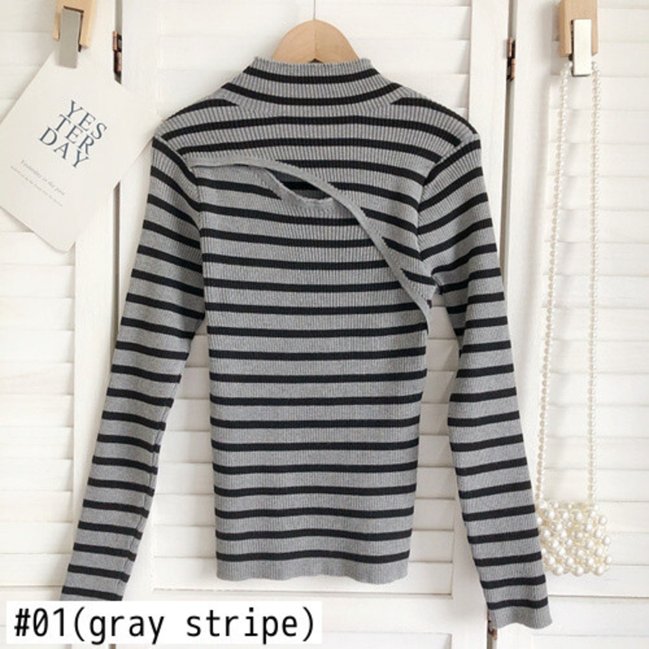 ノミクマ 秋冬 ストライプ ニット ベーシックセーター セクシー くりぬき 半衿 長袖 スリム ニット ロング オータム 秋物 ウィンター 冬物 kor35373437184