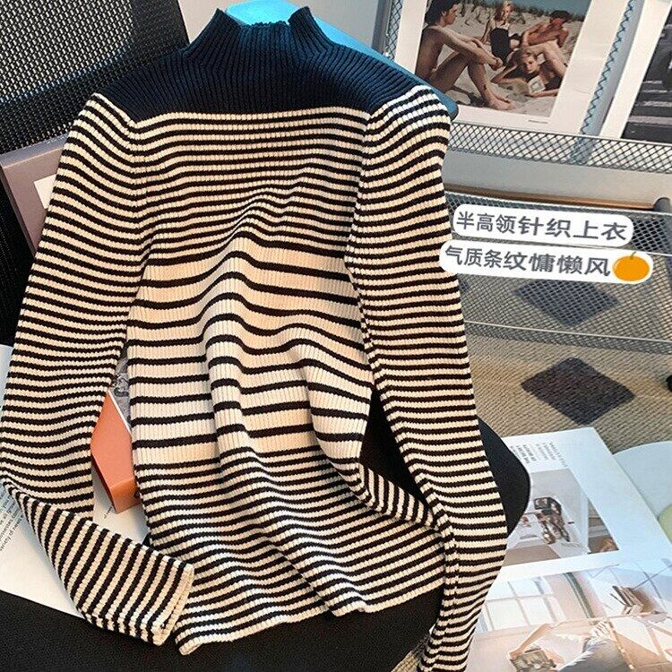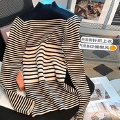 Nomikuma ハーフネックセーター レディース スリム 2022 秋冬 ベーシックニット ヒットカラー ストライプ ニット プルオーバー オータム 秋物 ウィンター 冬物 kor81115200433