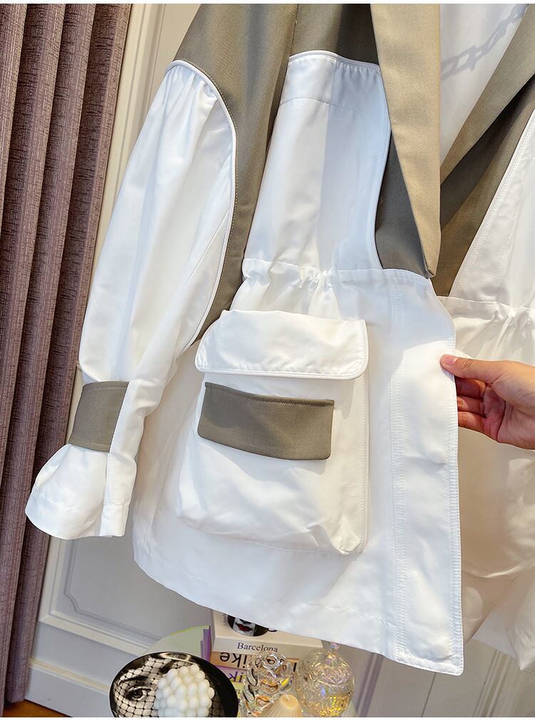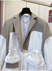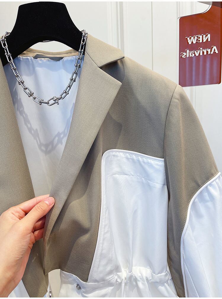 Nomikuma 女性 2022 春秋のコート因果バットウィングスリーブターンダウン襟生き抜くヒットカラースーツパッチワークジャケット スプリング 春物 オータム 秋物 kor26913241115