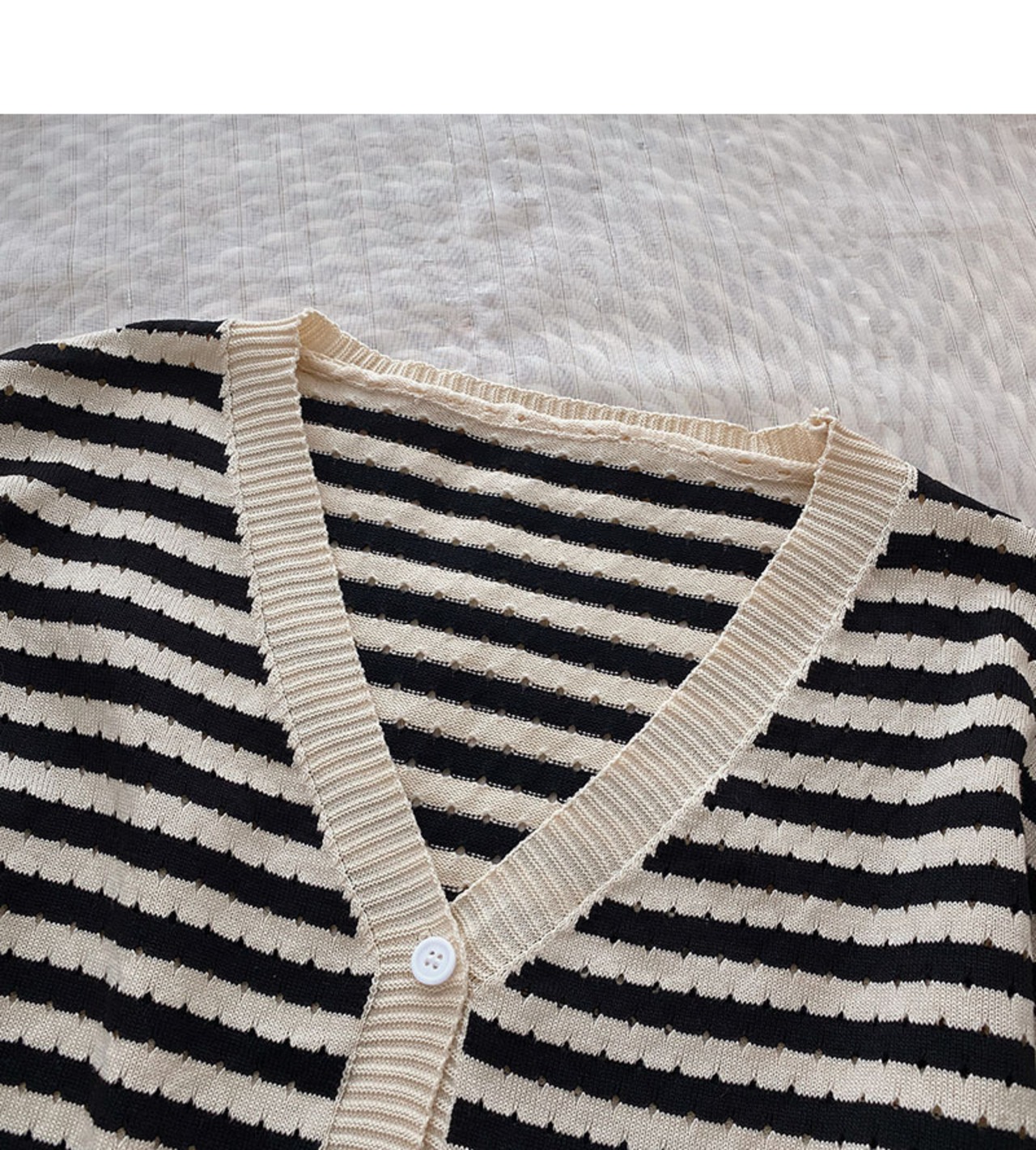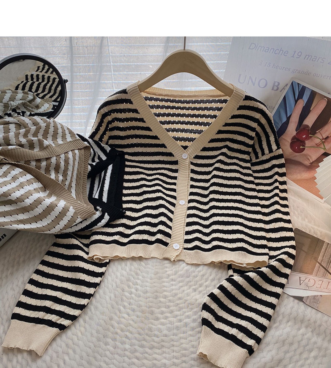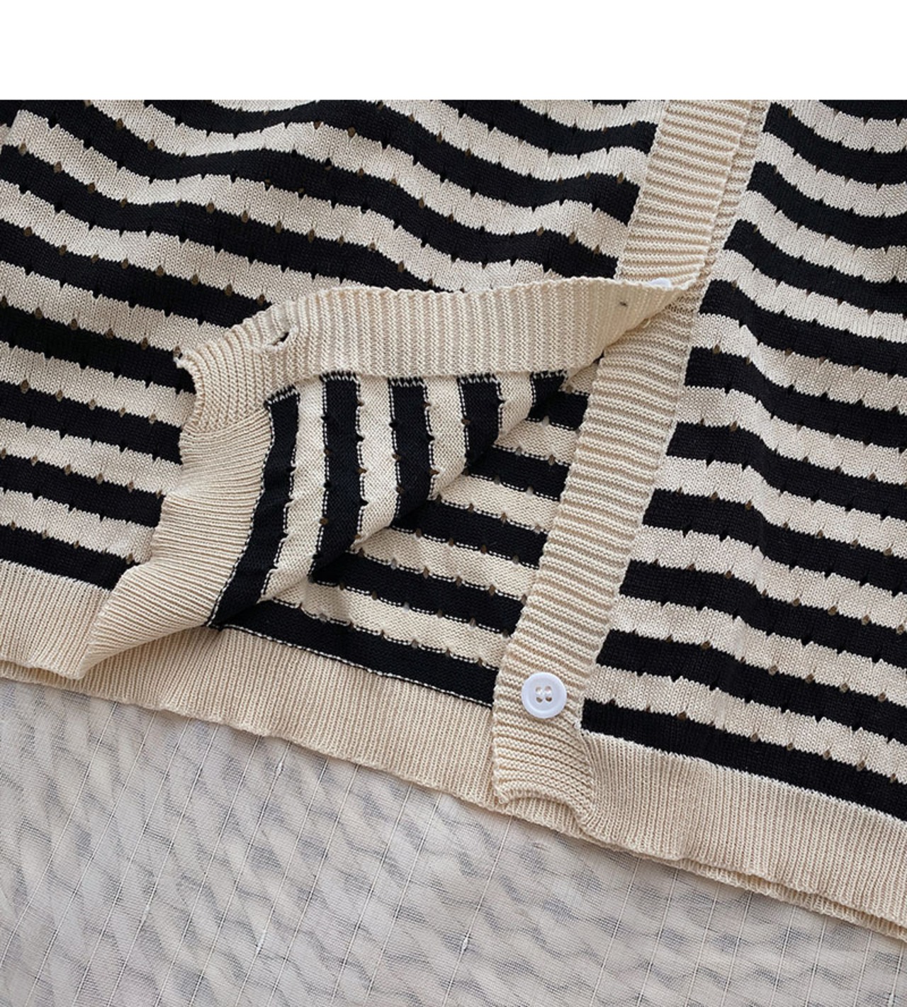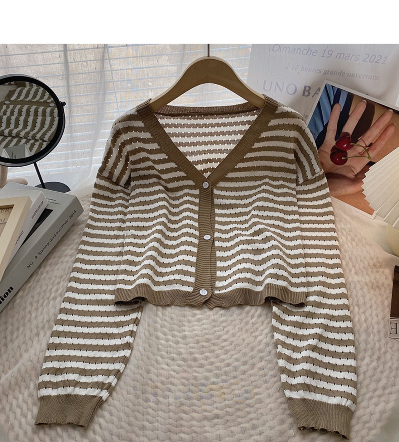 Nomikuma 2022 秋ストライプニットカーディガン因果長袖 V ネックショートニットショート女性セーターコート ロング オータム 秋物 Vネック kor46764586277