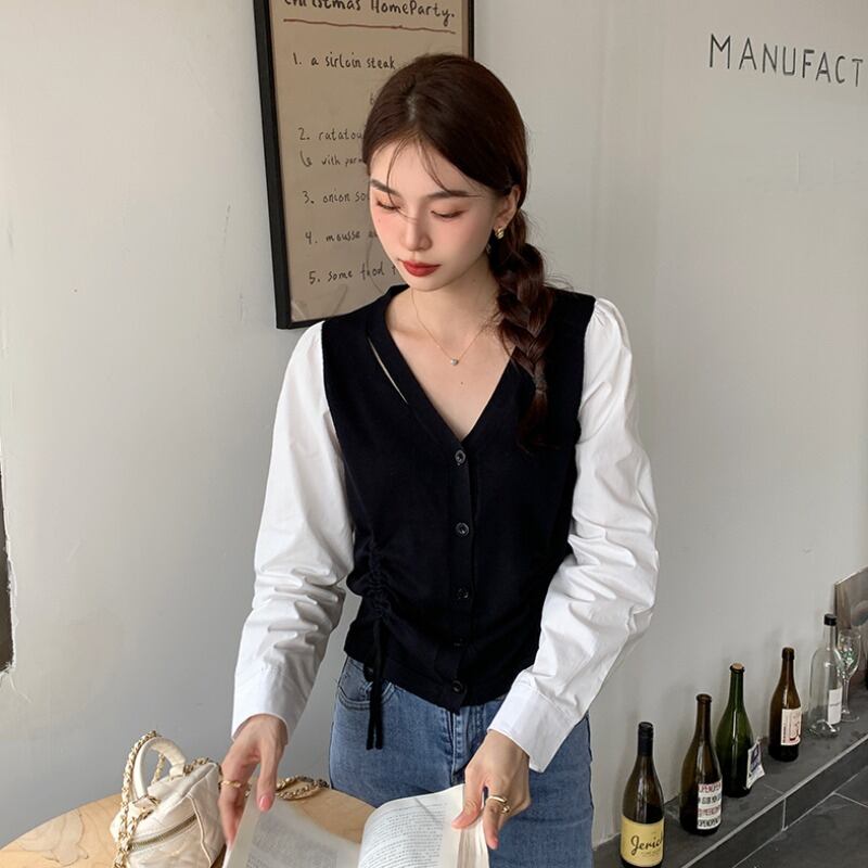 Nomikuma シックな V ネック巾着スリムセーターコートヒットカラーブラウスパッチワーク女性秋ニットカーディガン 2022 オータム 秋物 Vネック kor64842300558