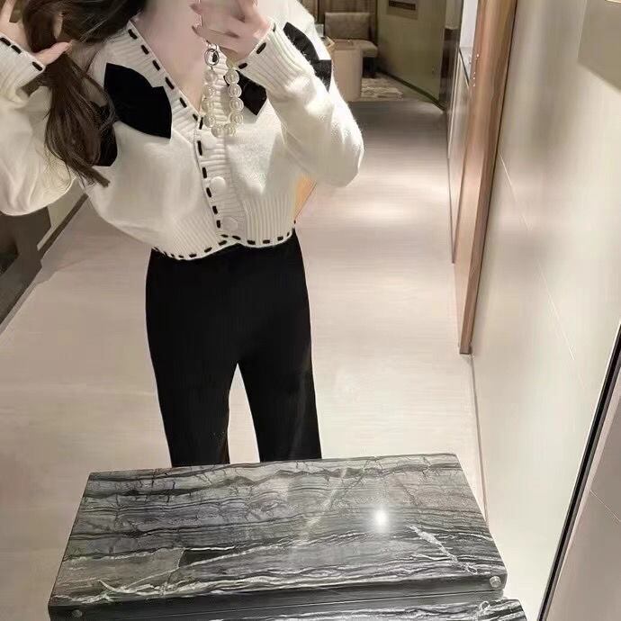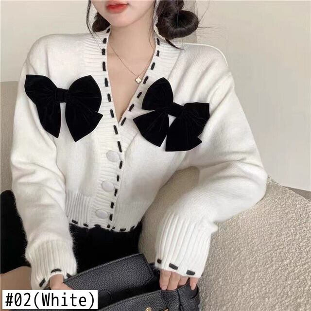 Nomikuma ヒットカラーちょう結びセーター女性秋 2022 ショートニットカーディガン因果甘いニット生き抜く リボン 大人ガーリー スウィート キュート カジュアル オータム 秋物 kor92804279000