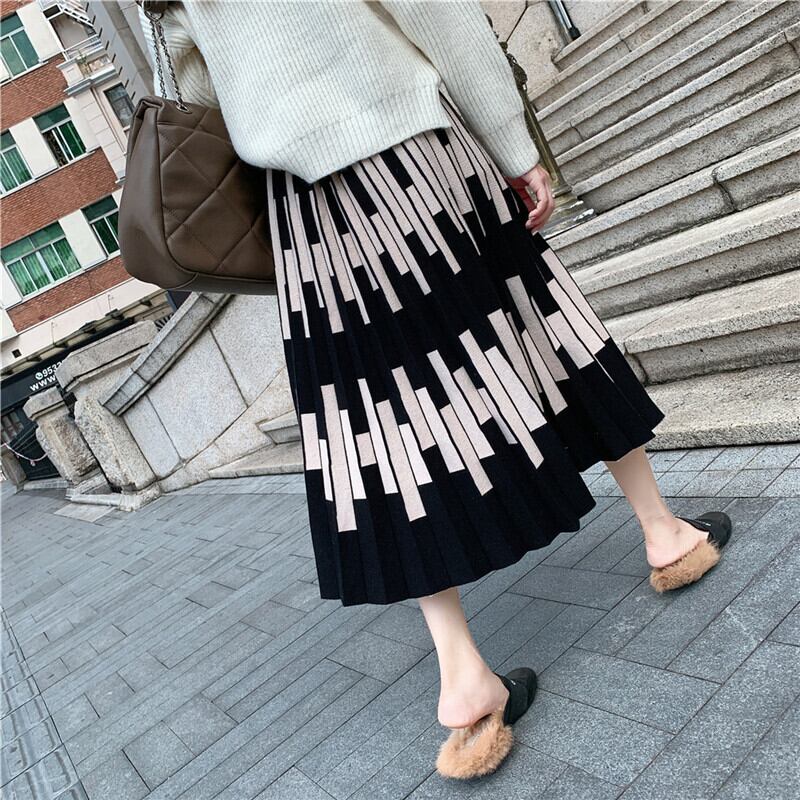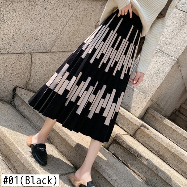 Nomikuma秋冬セータースカートレディース2022ウエストカジュアルヒットカラーストライプニットスカートファルダス オータム 秋物 ウィンター 冬物 kor8979098895