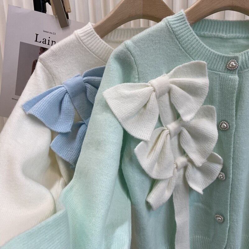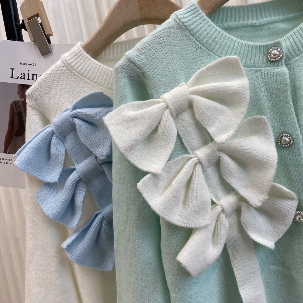 Nomikuma 2022秋のヒットカラーちょう結びリボンセーターニットカーディガン長袖Oネック冬ニットコートプル ロング オータム 秋物 ウィンター 冬物 kor42544190094