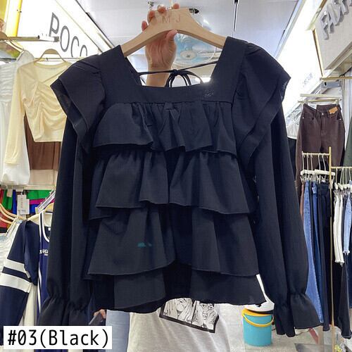 Nomikuma シックなスクエアカラーフリルブラウス女性 2022 秋フレア長袖シャツ因果甘いプルオーバートップ ロング 大人ガーリー スウィート キュート カジュアル オータム 秋物 スクウェア kor97448617529