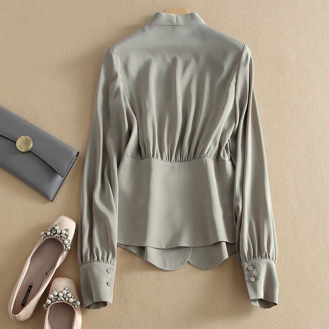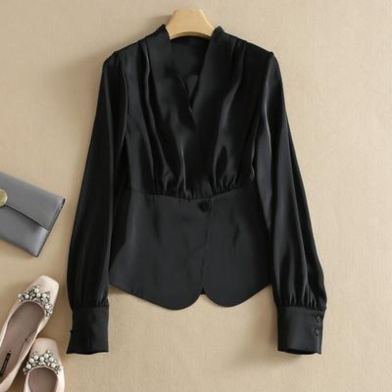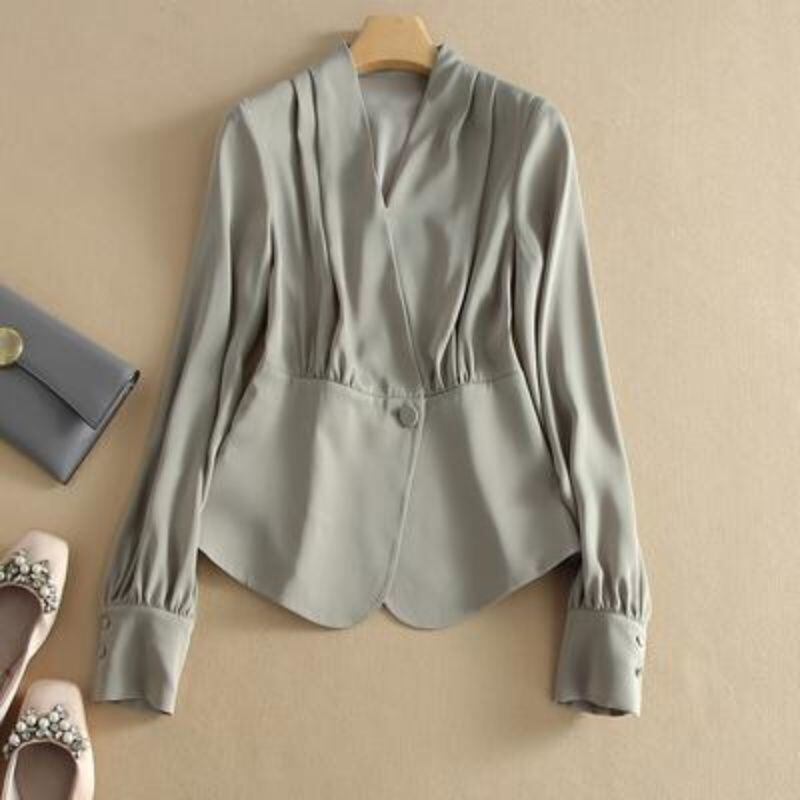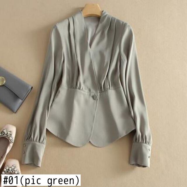 Nomikuma 女性 V ネック長袖ブラウス 2022 ミュウひだスリムウエスト女性シャツシングルボタン Fahsion トップ ロング Vネック kor37799177956