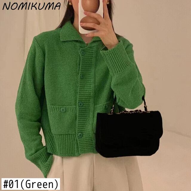 Nomikuma ニットカーディガン 2022 秋ターンダウン襟シングルブレスト長袖セーター女性ニットコート ロング オータム 秋物 kor47375295833