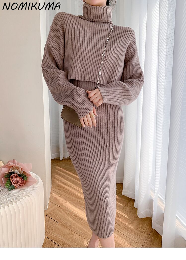 Nomikuma ニット 2 点セット レディース衣装タートルネック長袖プルオーバー Swetaer + ベーシック無地スリング Bodycorn ドレス 2022 ロング ソリッドカラー kor50537846990