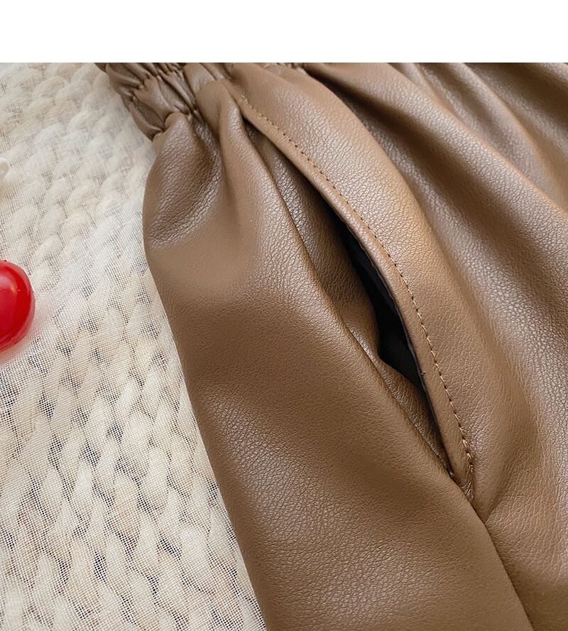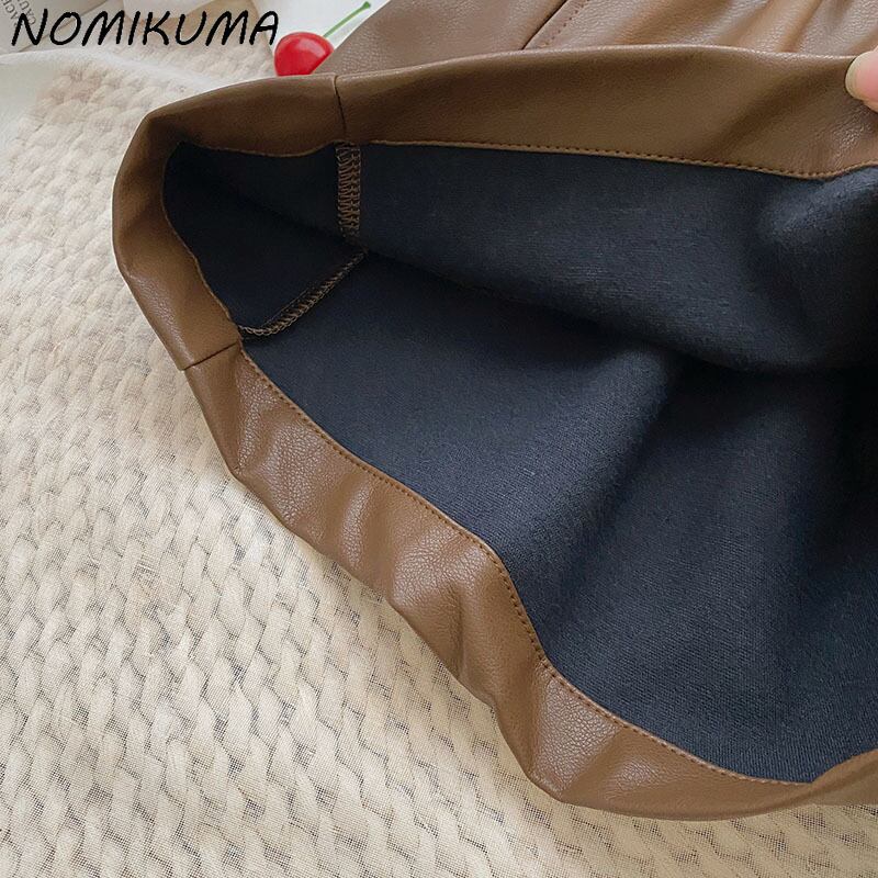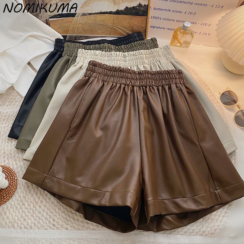 Nomikuma 固体弾性ウエストワイドレッグ PU レザーショーツ女性 2022 秋の因果ショート Feminimos ボトムス エラスティック 伸縮 オータム 秋物 ブルマー ワイドパンツ ソリッドカラー kor64741721771