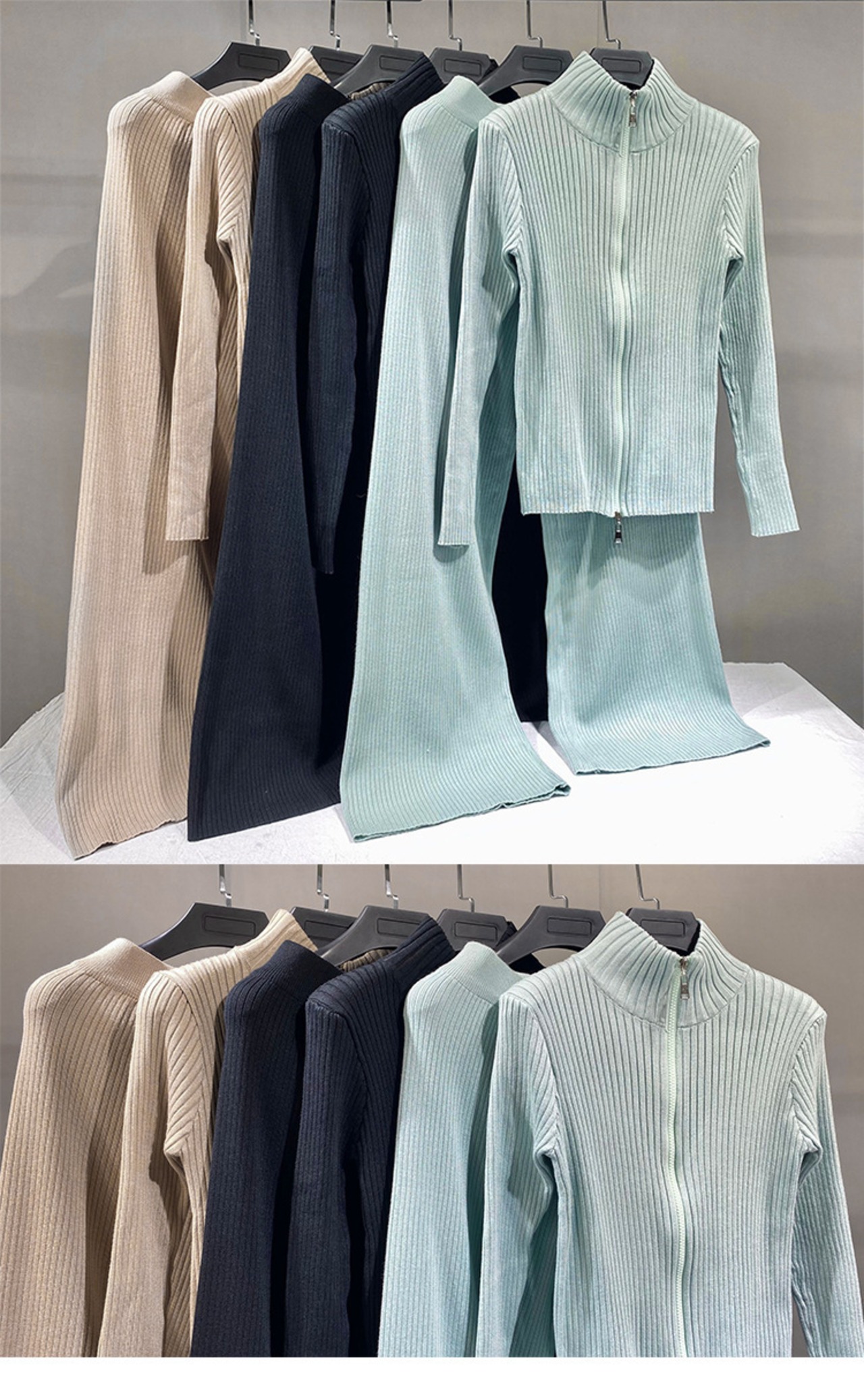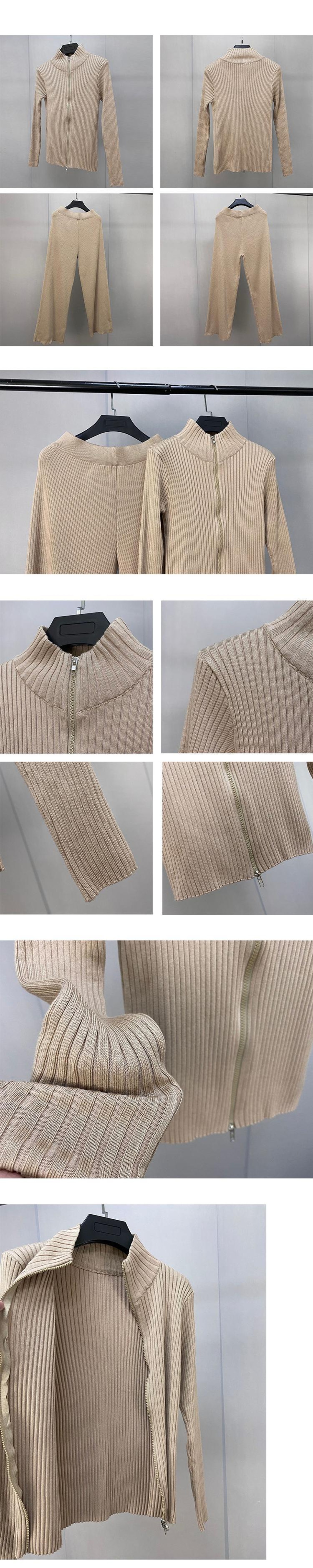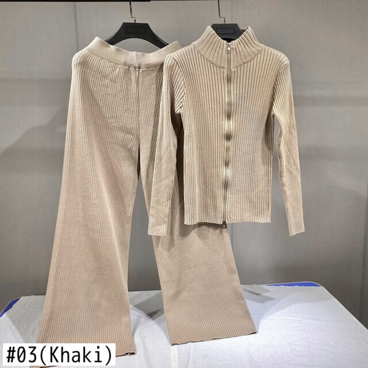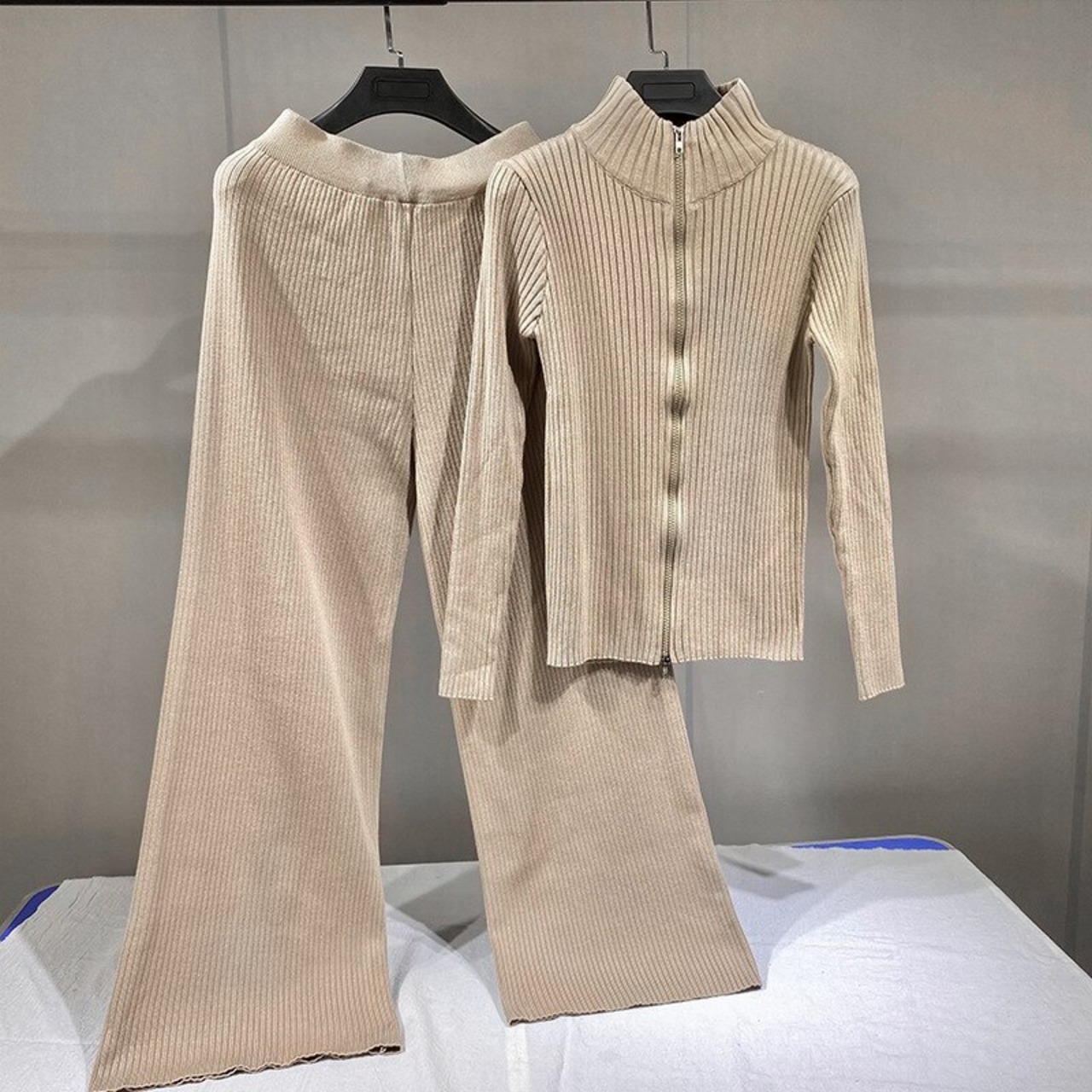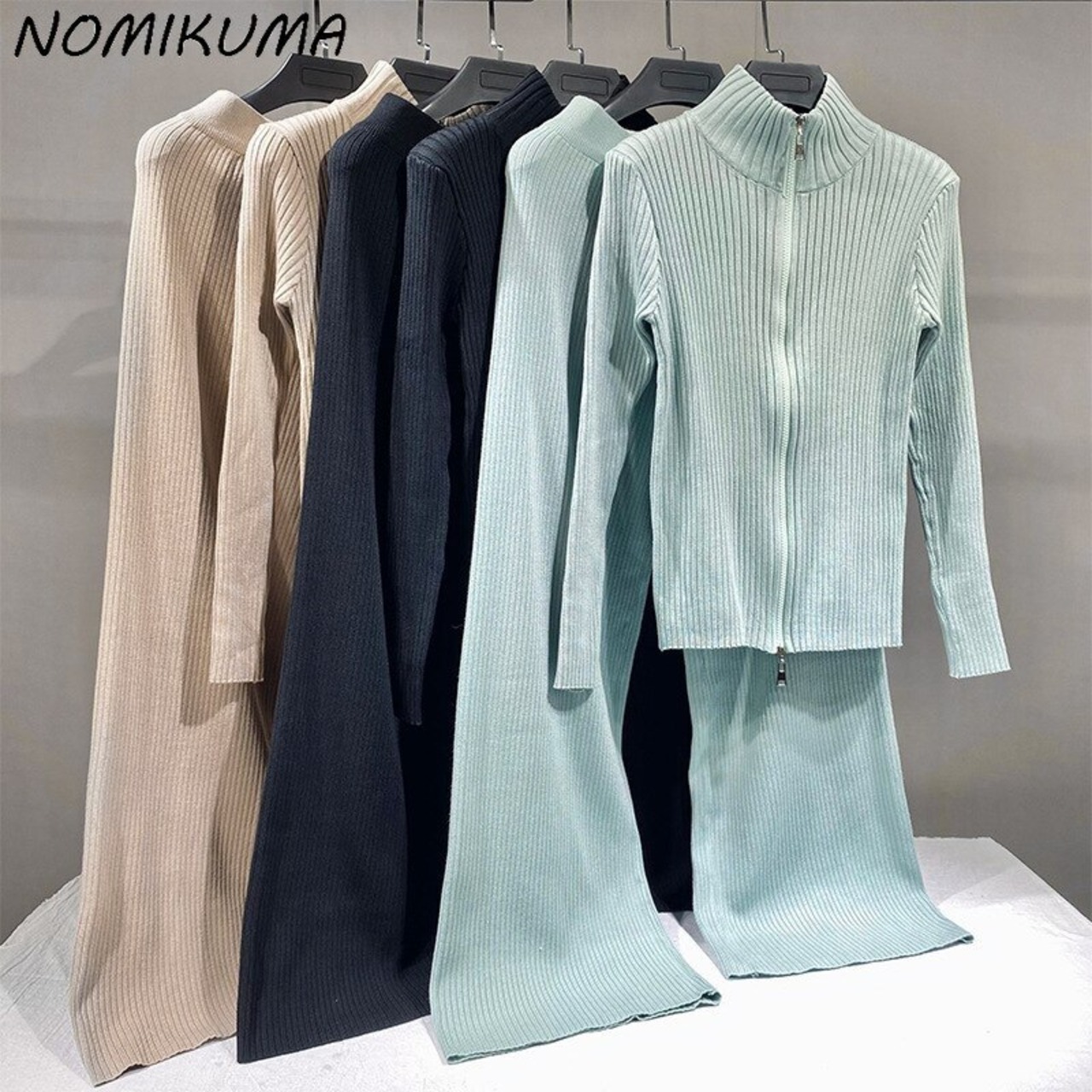 Nomikuma 2022 秋冬ニットツーピース女性セットジッパースタンドネック長袖ニットコート + ウエストワイドレッグパンツ ロング オータム 秋物 ウィンター 冬物 ワイドパンツ kor84729960459