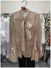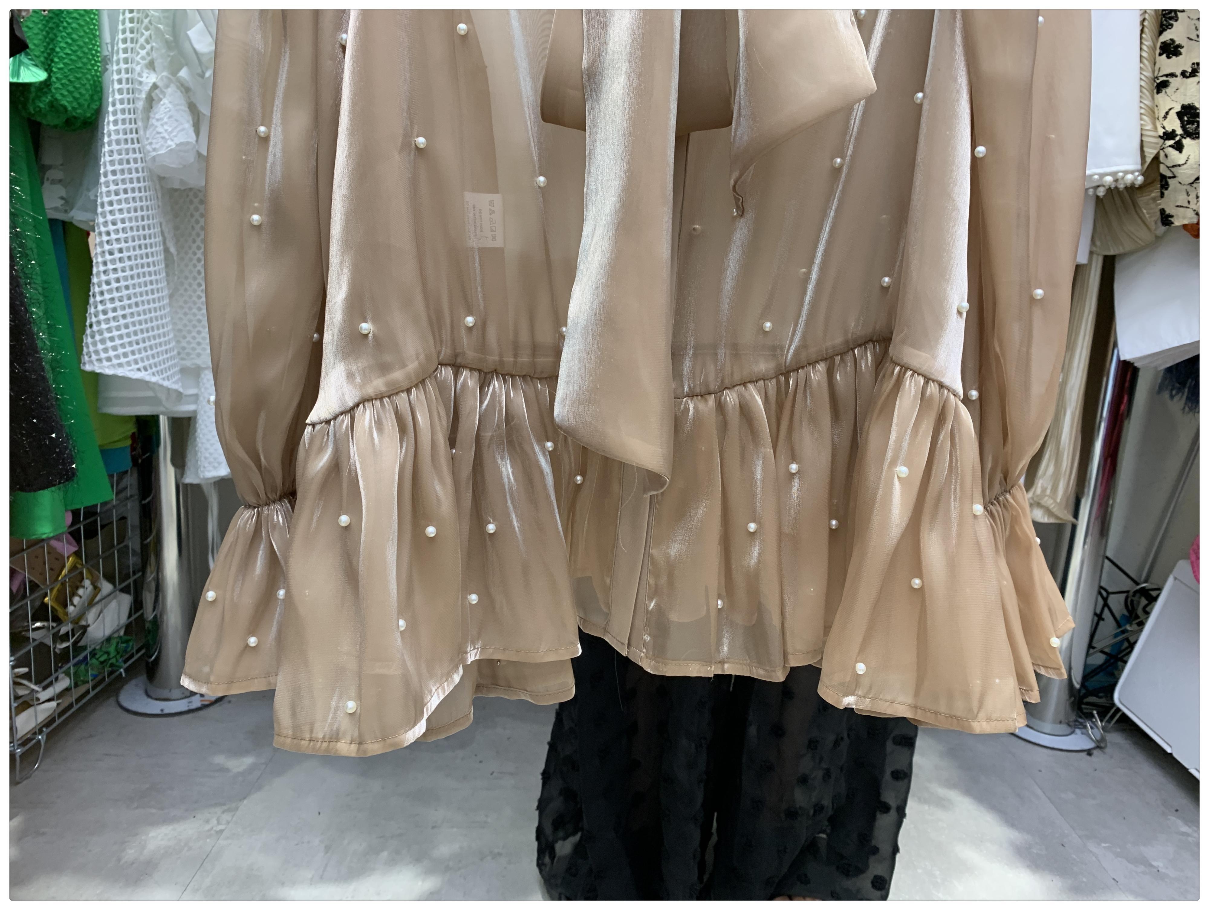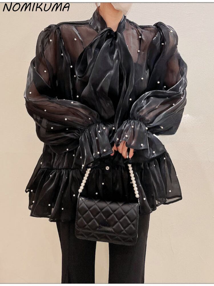 Nomikuma 弓包帯シースルーブラウス女性 2022 秋シャツ Logn スリーブスタイルデ リボン オータム 秋物 kor11585040803