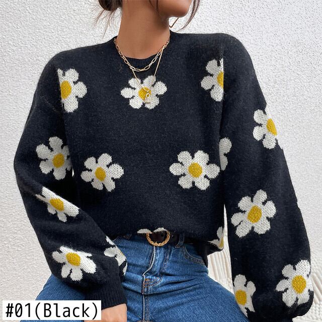 Nomikuma プルフローラルジャカードニット女性は 2022 秋冬 O ネック長袖ニットプルオーバーセーター ロング オータム 秋物 ウィンター 冬物 花柄 Oネック kor78740493768