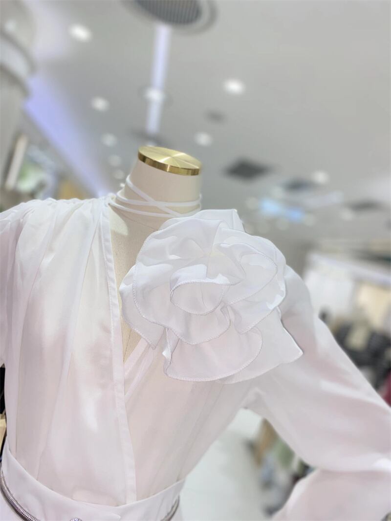 Nomikuma ブラウス女性シックな 3D 花 V ネックホルター長袖シフォンシャツ秋デ 2022 ロング オータム 秋物 Vネック フラワーデザイン kor89098631530