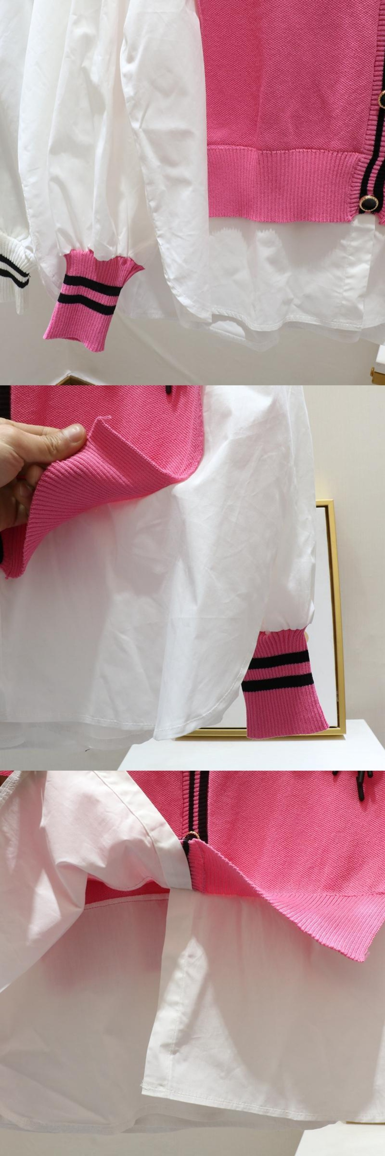 ノミクマ シック 立体フラワー ヒットカラー セーター プルオーバー カジュアル ブラウス パッチワーク 長袖 Vネック フェイクツーピース ニットトップス 2022 ロング フラワーデザイン kor53474995819