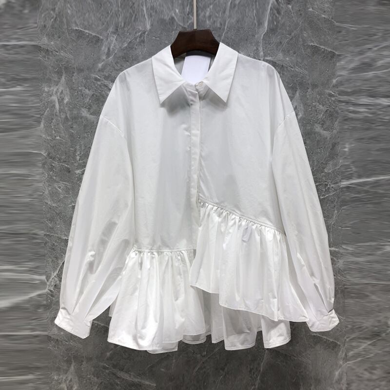 Nomikuma 女性ブラウスシックな不規則なフリルパッチワークトップシャツ 2022 秋の因果長袖ターンダウン襟 ロング オータム 秋物 kor77283647132