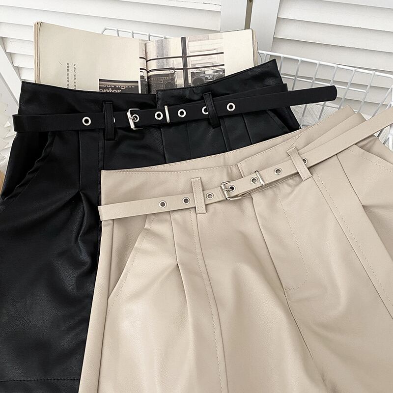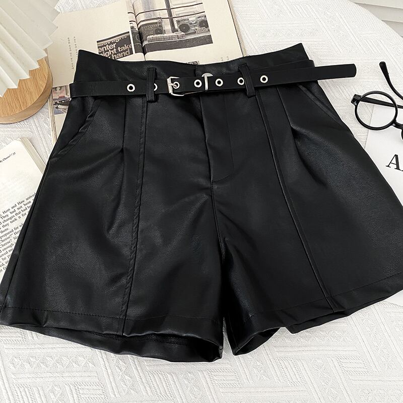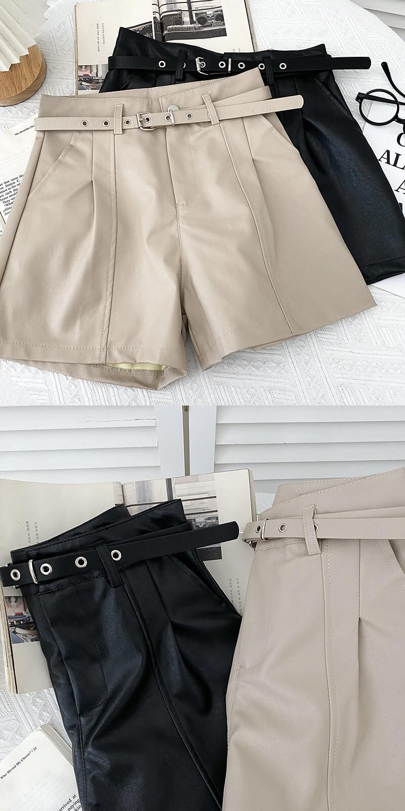 ノミクマ PUレザー ウエストワイドレッグショーツ ベルト付き 2022秋冬 ボトムス 無地 レディース ショートパンツ オータム 秋物 ウィンター 冬物 ハーネス ブルマー ワイドパンツ ソリッドカラー kor97839018235
