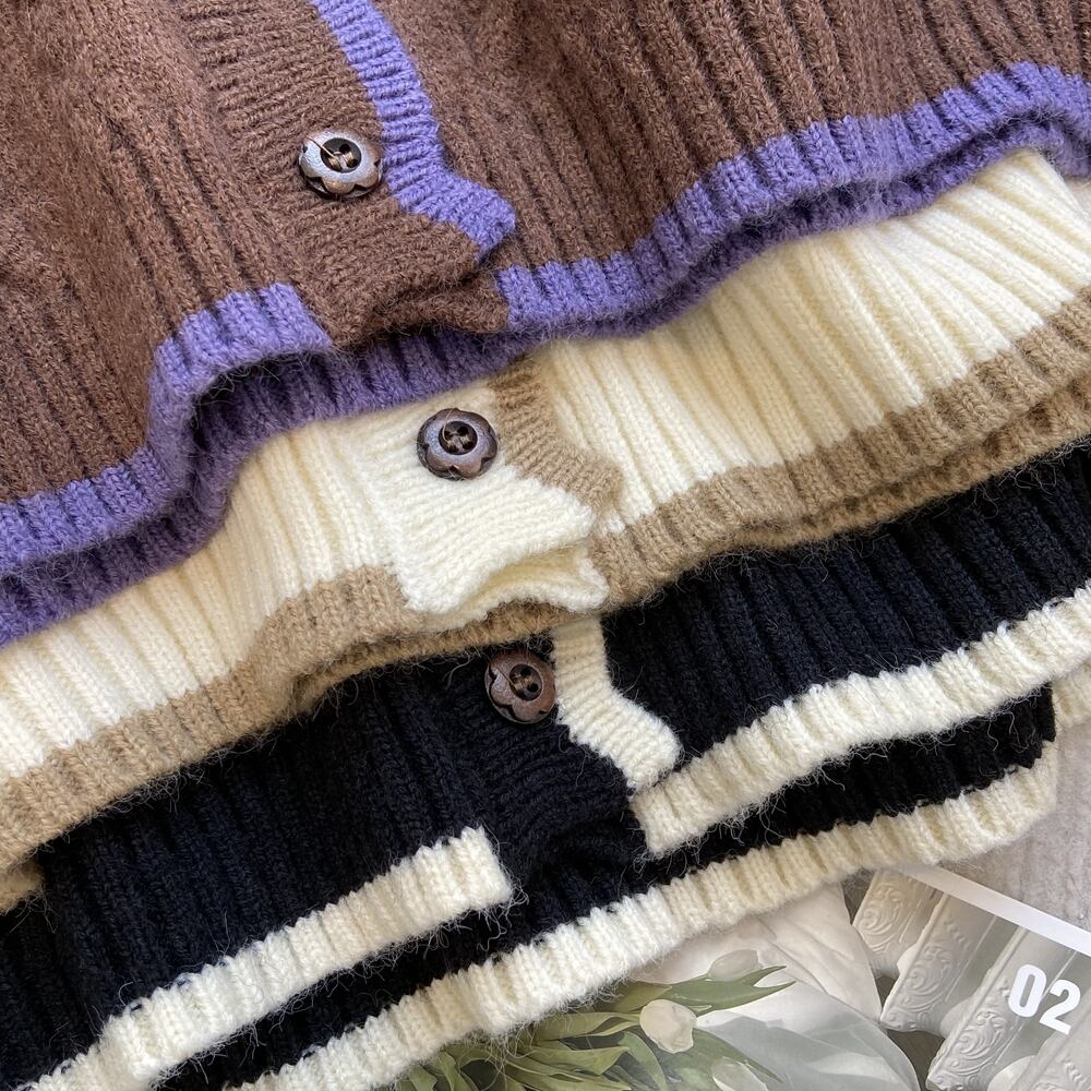 Nomikuma コントラストカラー O ネックニットセーターカーディガン因果 2022 秋冬女性ツイストニットコート オータム 秋物 ウィンター 冬物 Oネック kor47938119367