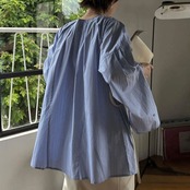 Nomikuma シックな秋ストライプ女性シャツ因果長袖 O ネックブラウストップス 2022 ミディアムロング オータム 秋物 Oネック kor10664584917