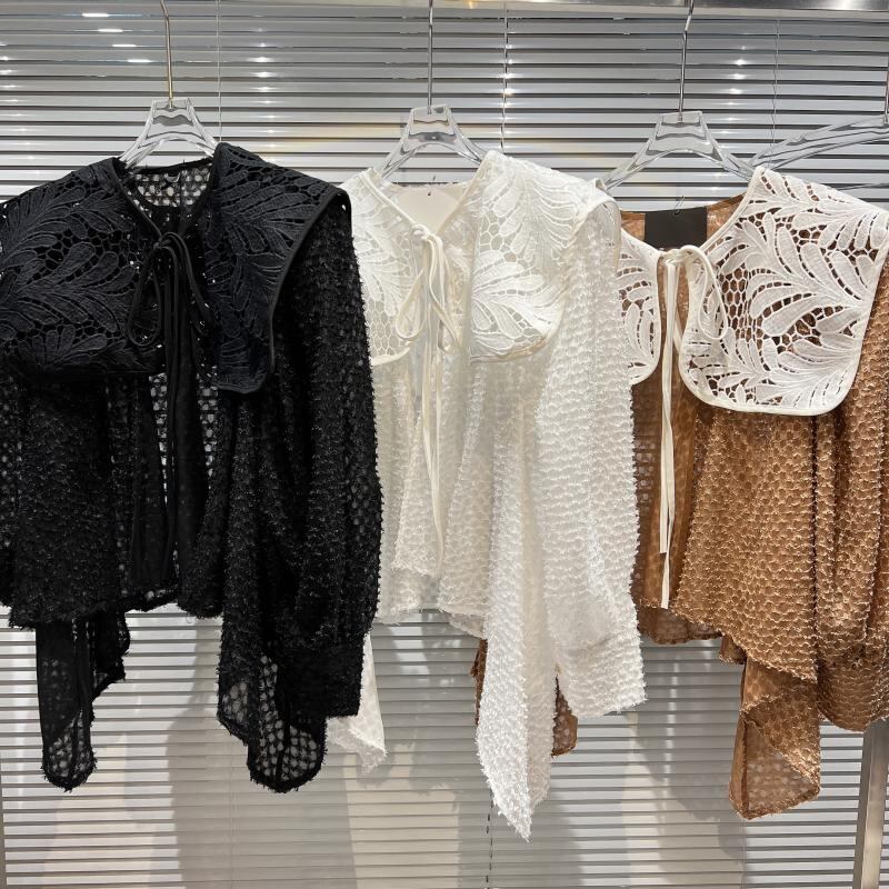 Nomikuma 2022 秋ブラウス女性フックレースアップショール + 中空アウト長袖トップスシャツ女性二枚トップスセット ロング オータム 秋物 kor57818815796