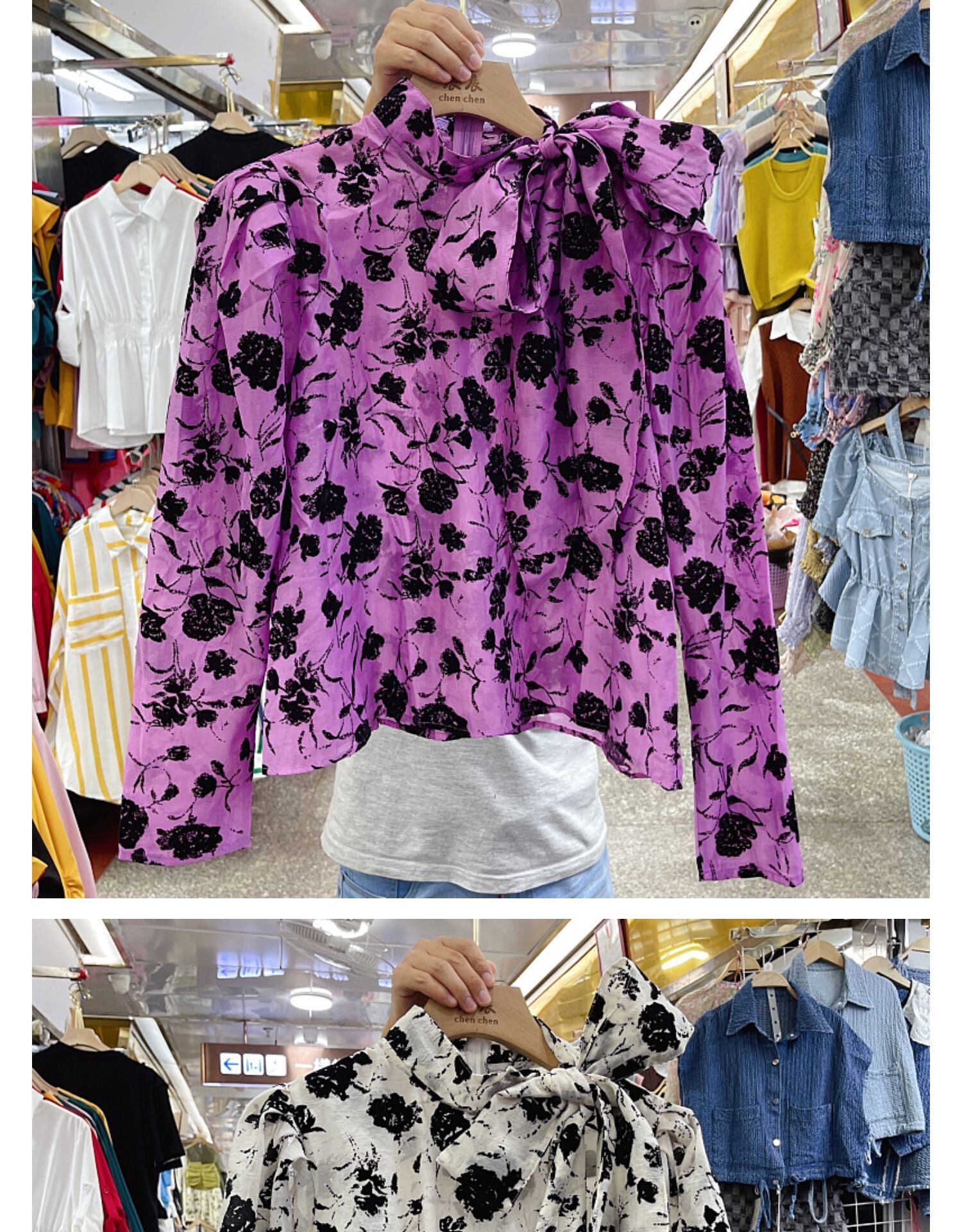 Nomikuma 2022 秋花柄シフォンブラウス弓包帯スタンドネック女性シャツ因果パフスリーブトップ リボン オータム 秋物 kor19391252447