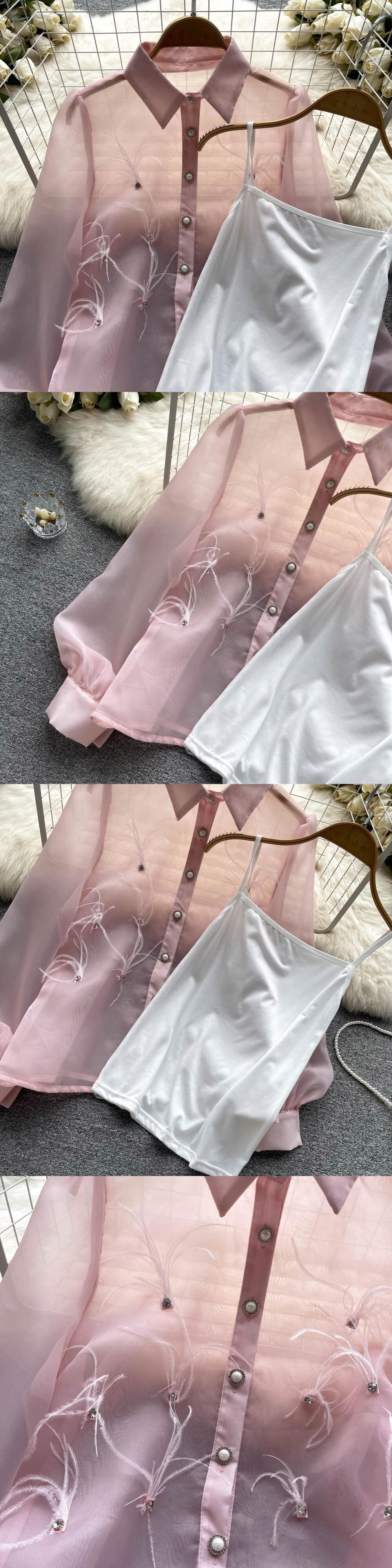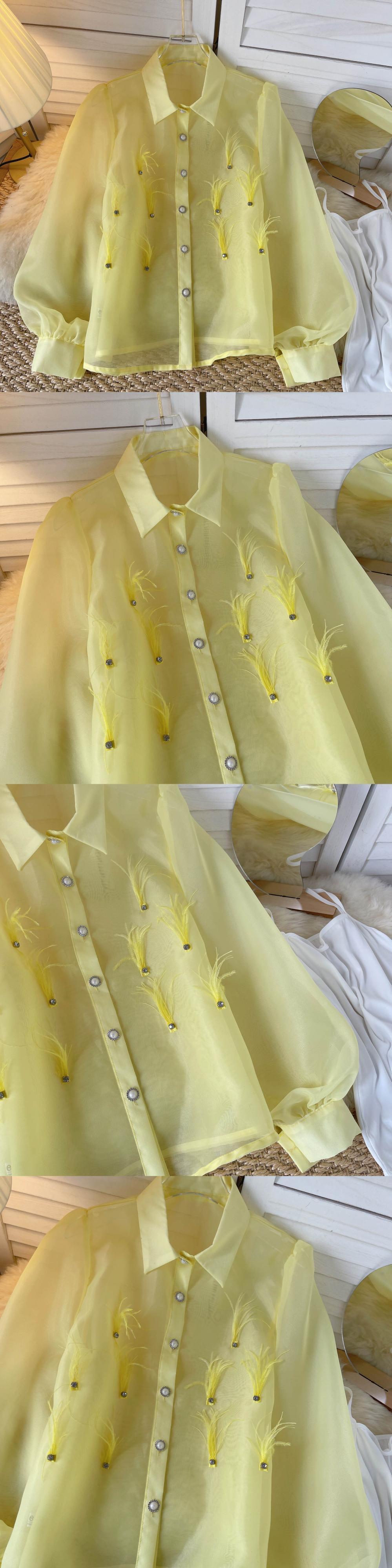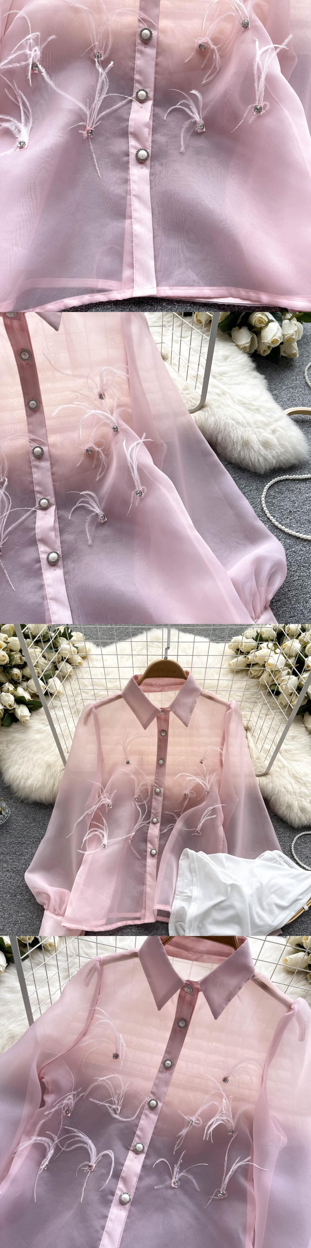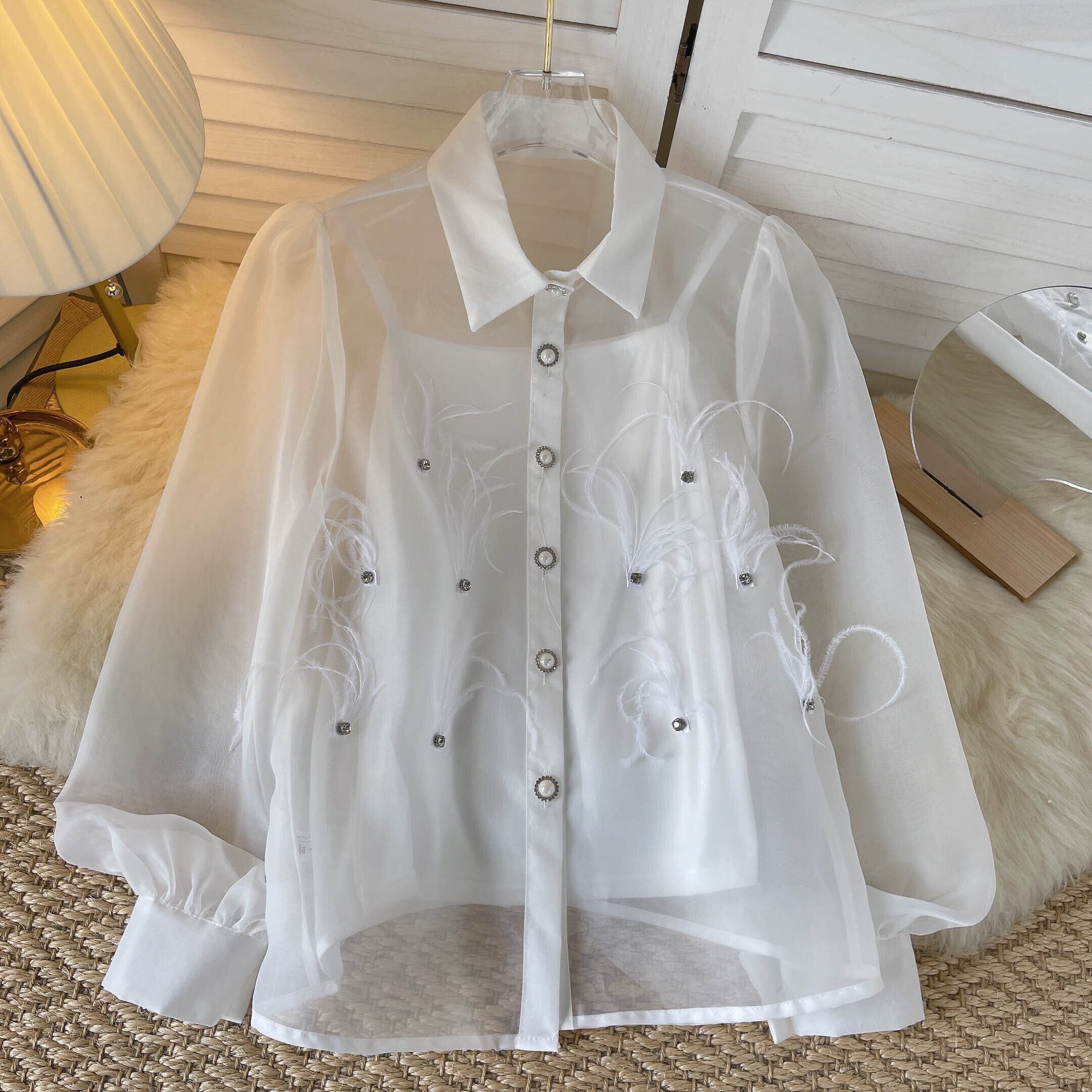 Nomikuma シースルー ブラウス トップス シックなダイヤモンド フェザー レディース シャツ De Moda 2022 Verano kor19182248492
