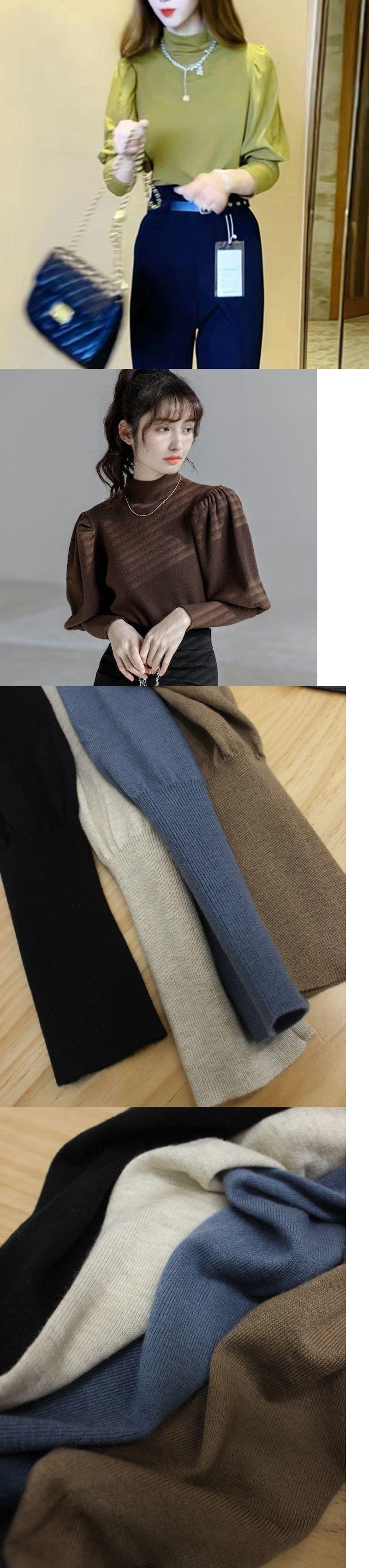 ノミクマ 半衿ニット 秋冬 ランタンスリーブ セーター 2022年 無地 プルオーバー ニット トップス オータム 秋物 ウィンター 冬物 ソリッドカラー kor92360914765