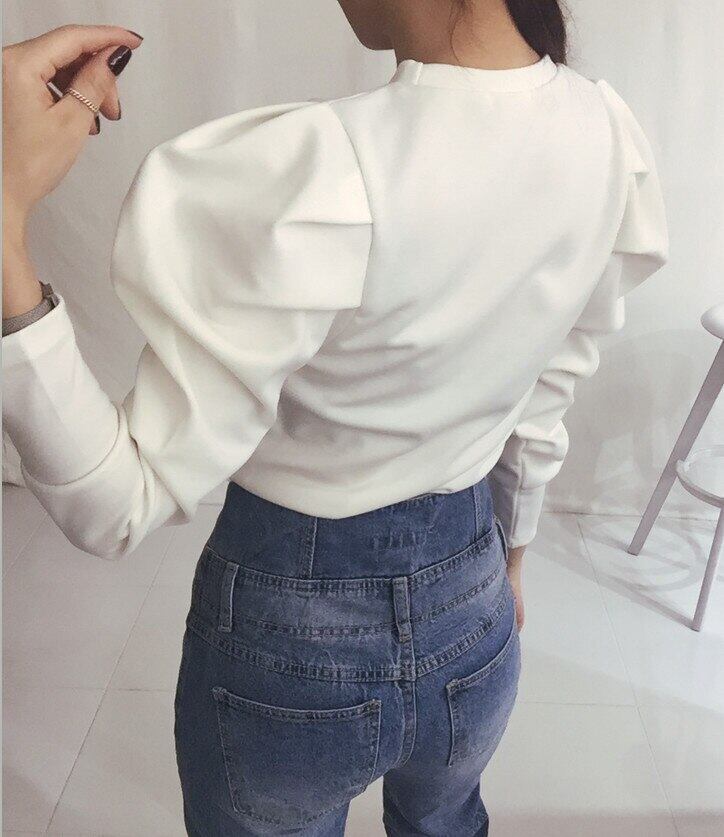 Nomikuma パフスリーブ女性スウェットシャツ因果無地 O ネックプルオーバートップスジャンパー 2022 秋パーカー オータム 秋物 Oネック ソリッドカラー kor88629941910