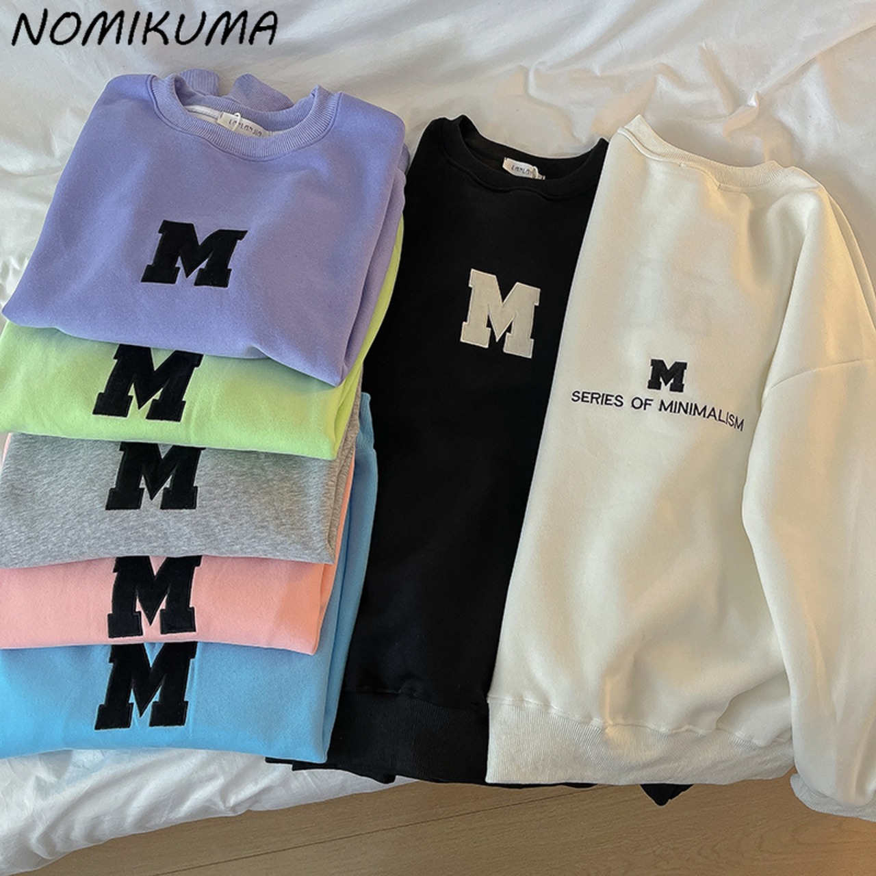 Nomikuma 文字刺繍ミディアムロングスウェットシャツの女性 2022 秋パーカートップ因果プルオーバージャンパー オータム 秋物 kor84532128516