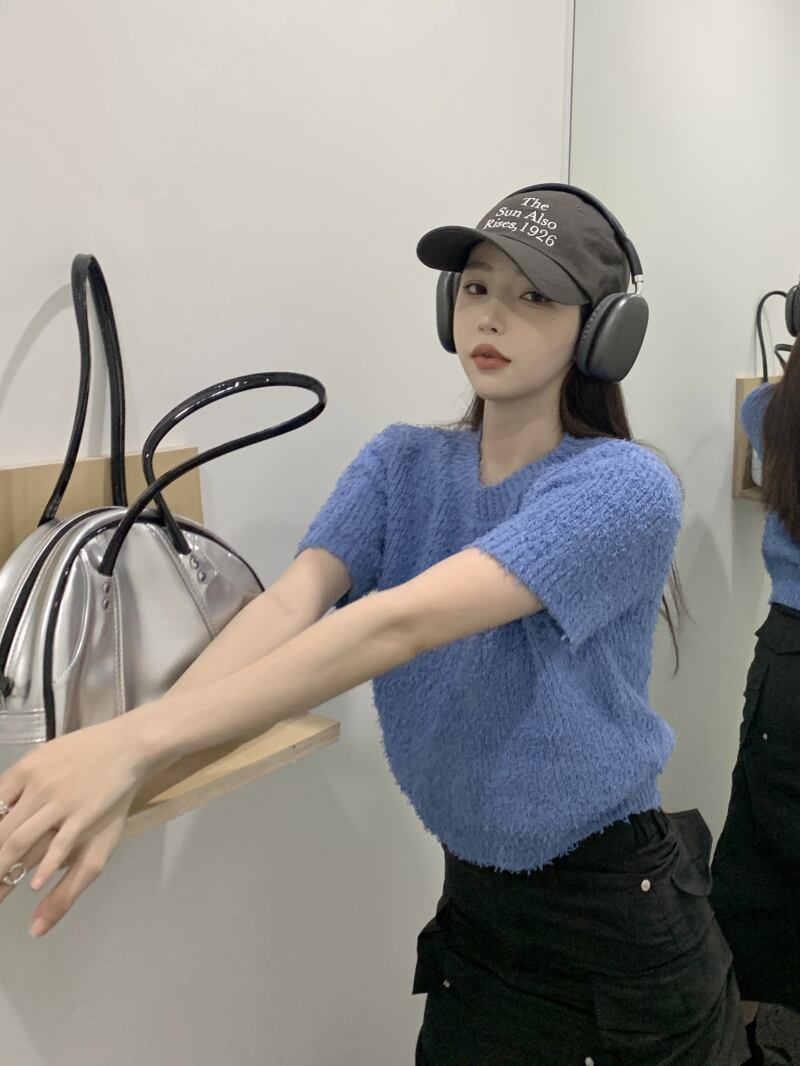 Nomikuma O ネック半袖セーター女性ソリッドショートプルオーバーニット 2022 秋の甘いニットプルトップス ハーフスリーブ 大人ガーリー スウィート キュート カジュアル オータム 秋物 Oネック ソリッドカラー kor83841330953