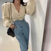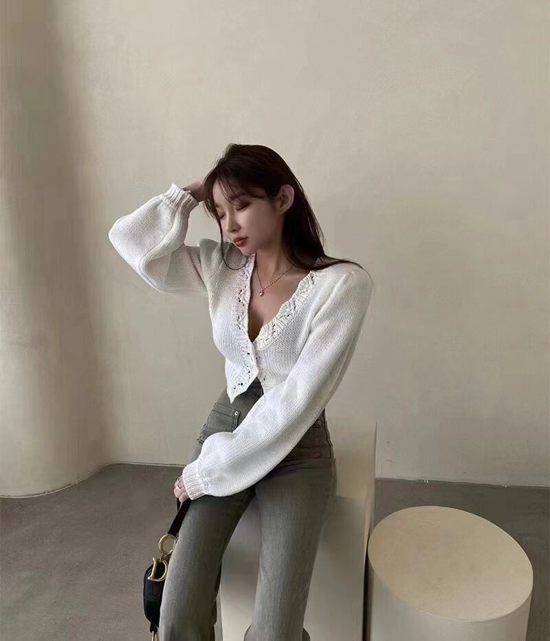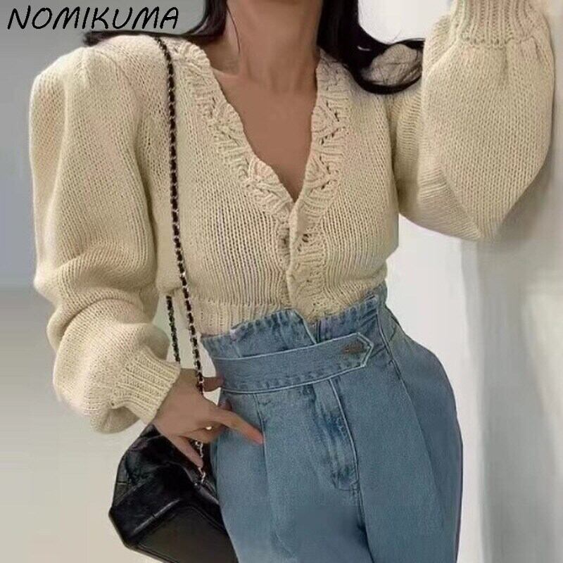 ノミクマ スリムウエスト ショートニット カーディガン 長袖 シングルブレスト Vネック セーター コート 2022年 秋 ニット ロング オータム 秋物 kor24135073499