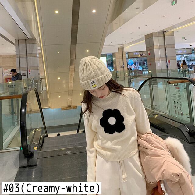 Nomikuma 甘いニットセーター女性秋冬 O ネックショートニットトップス 2022 因果甘い花プルジャンパー 大人ガーリー スウィート キュート カジュアル オータム 秋物 ウィンター 冬物 Oネック フラワーデザイン kor74808250407