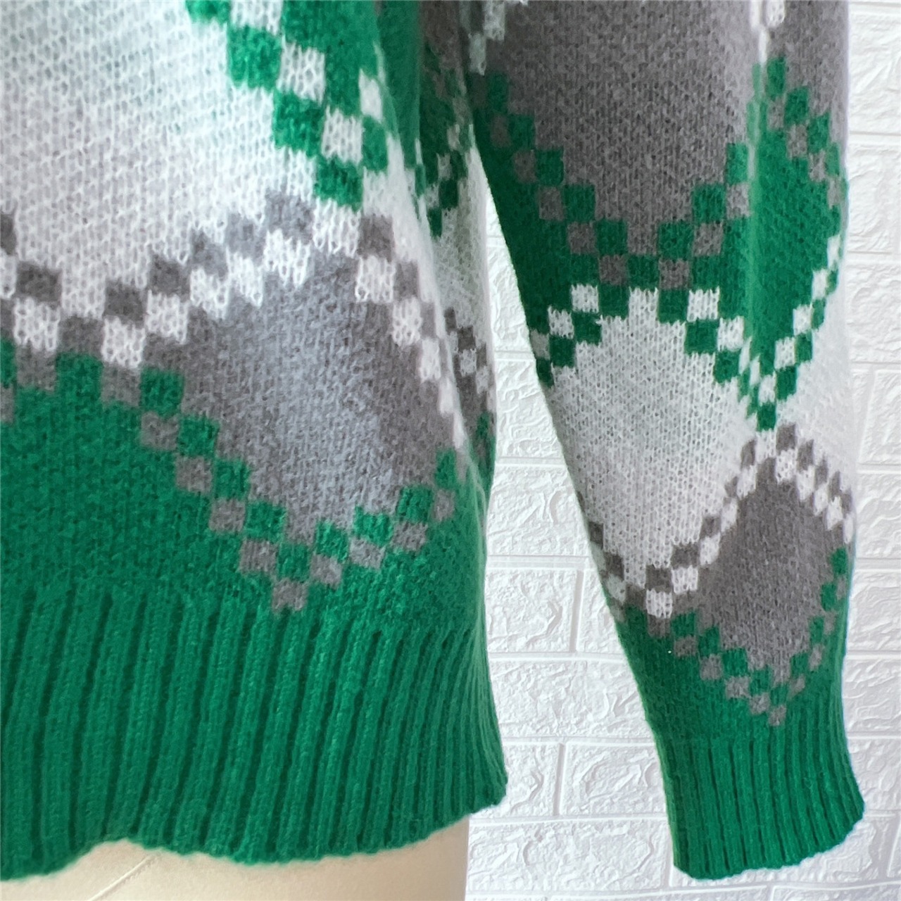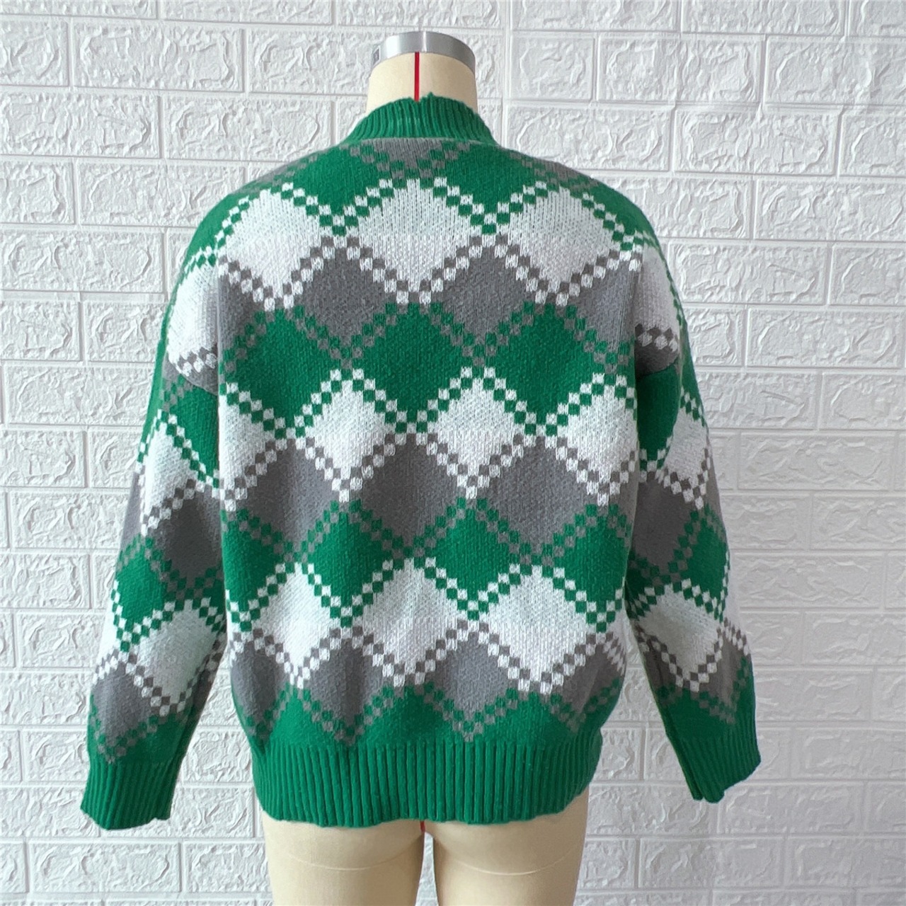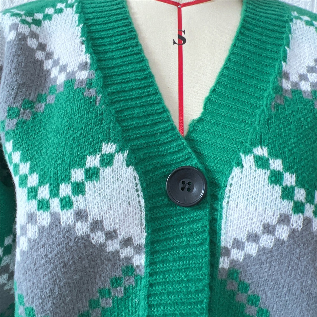 Nomikuma 2022 秋冬プルヒットカラーアーガイルセーター女性因果長袖 V ネックニットカーディガン ロング オータム 秋物 ウィンター 冬物 Vネック kor21419654109