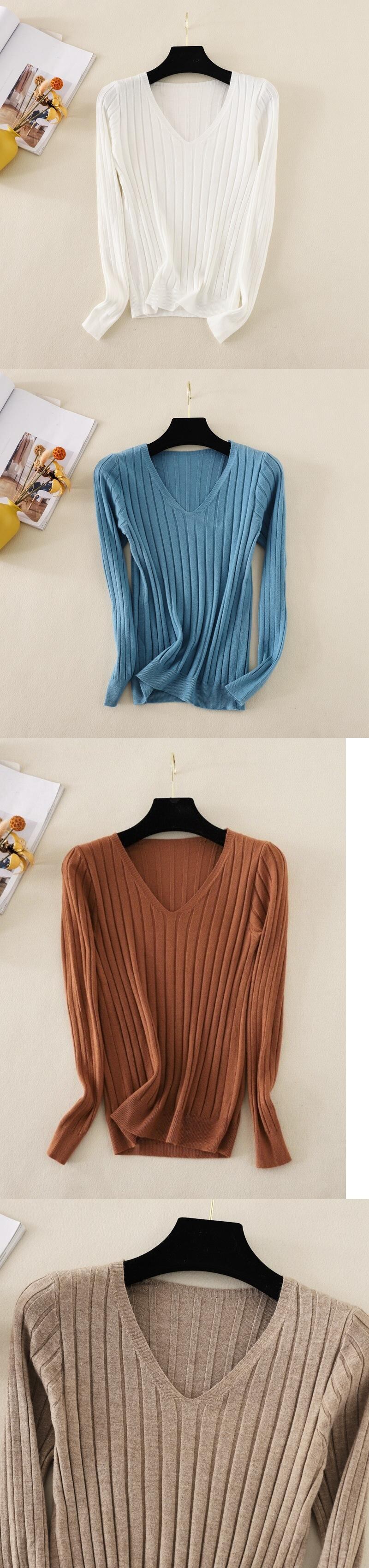 Nomikuma Vネック長袖ニット 2022年秋冬 ベーシックセーター レディース 無地 スリム ストレッチ プルオーバー ニット プルトップス ロング オータム 秋物 ウィンター 冬物 ソリッドカラー kor39593299585