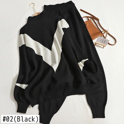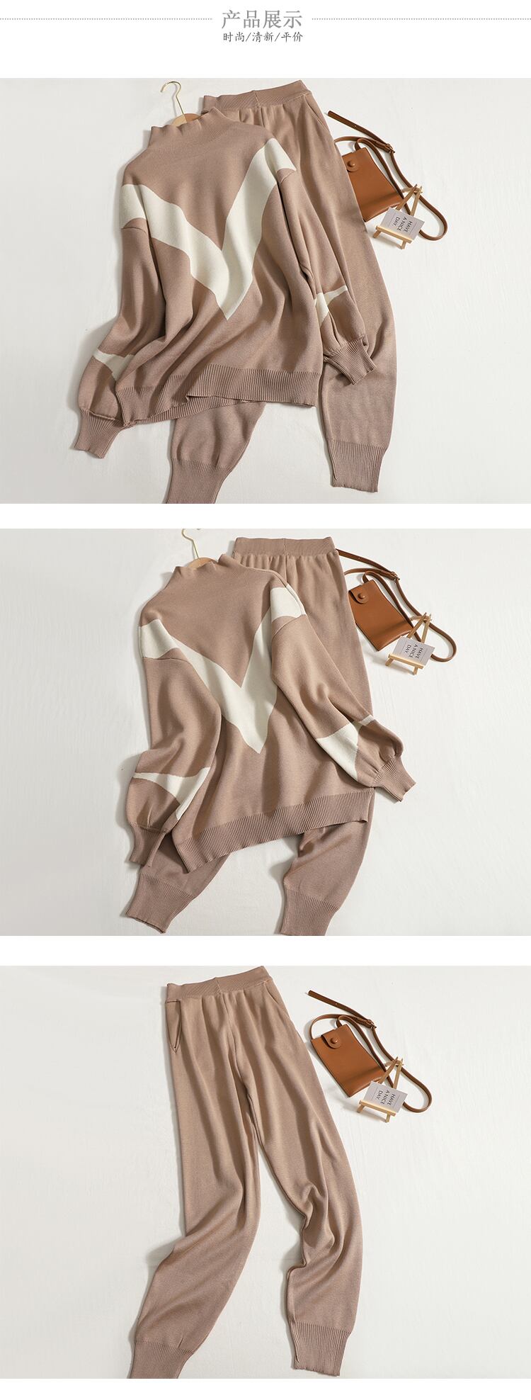 ノミクマ コントラストカラー 半衿長袖セーター+ウエストハーレムロングパンツ 2022秋冬 2点セット オータム 秋物 ウィンター 冬物 kor59856384519