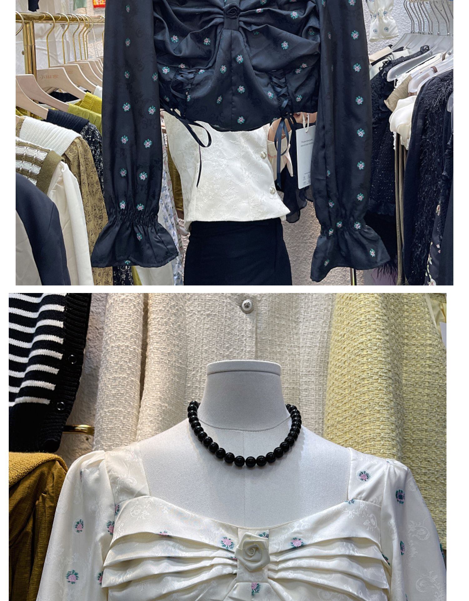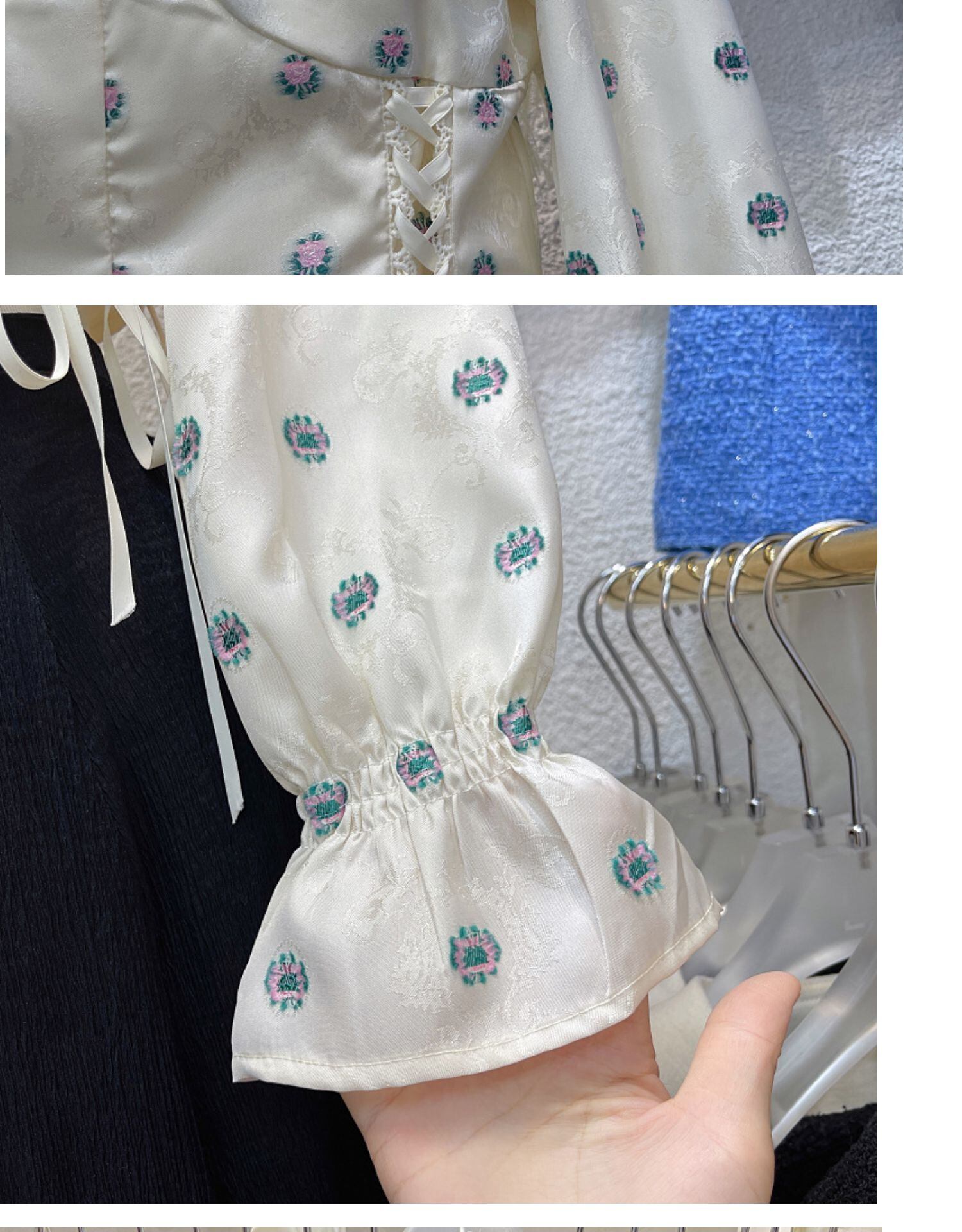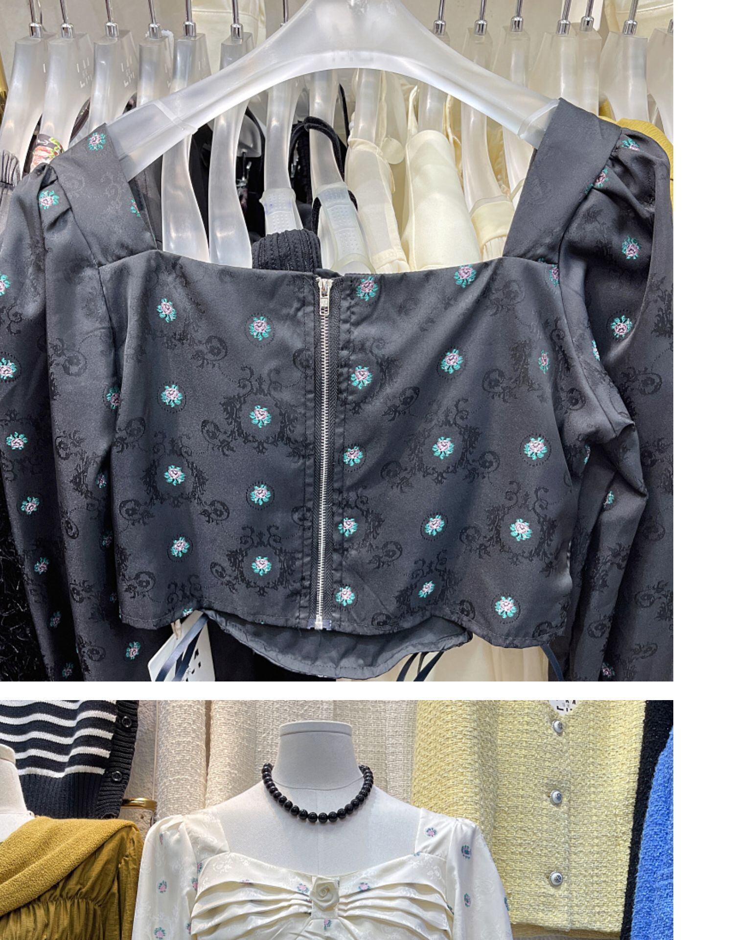 Nomikuma 2022 秋花柄ジャカードブラウス女性レースアップスリムウエストショートシャツスクエアカラーフレアスリーブトップス オータム 秋物 スクウェア kor34571712577