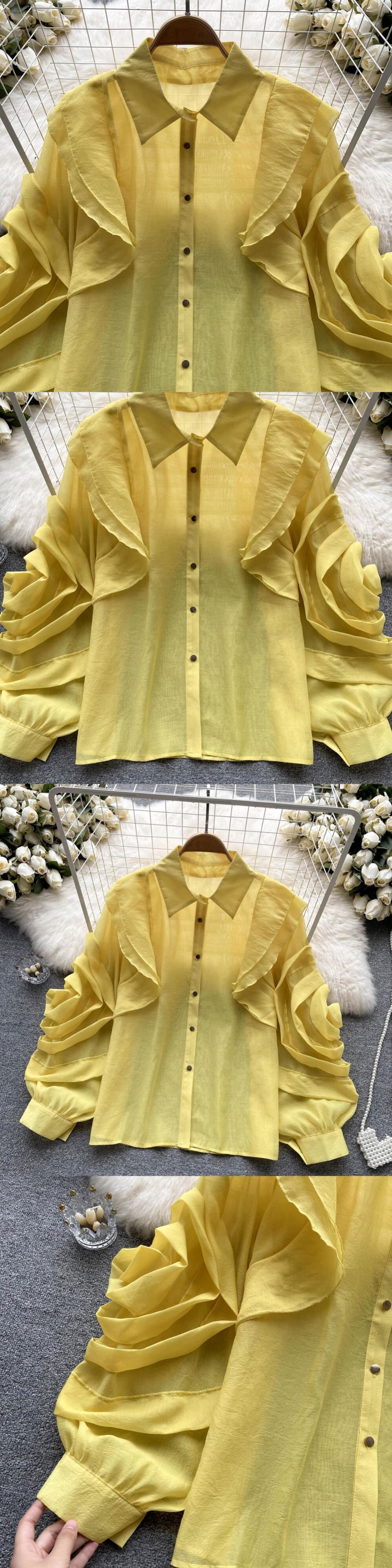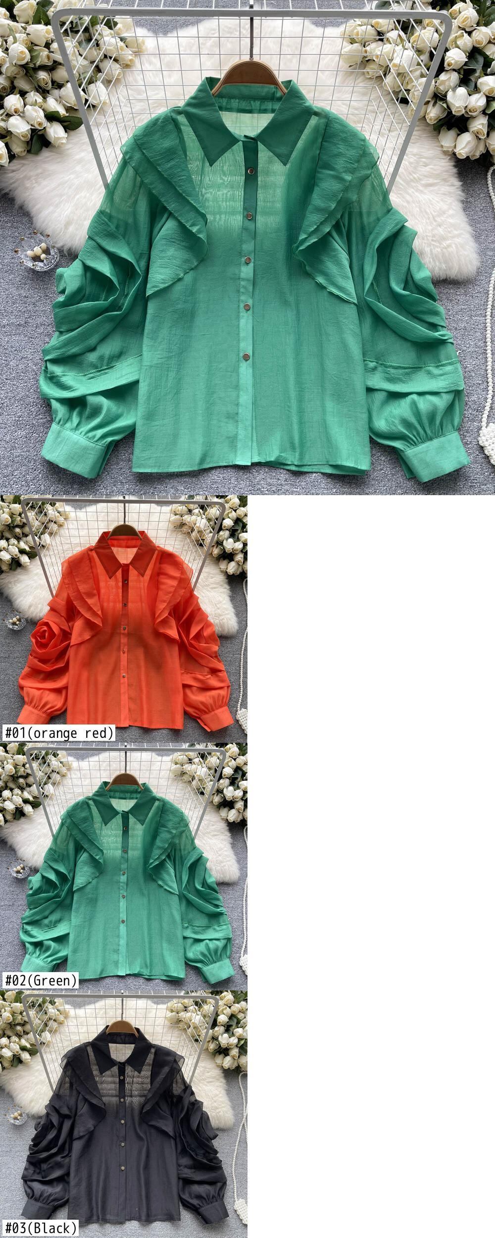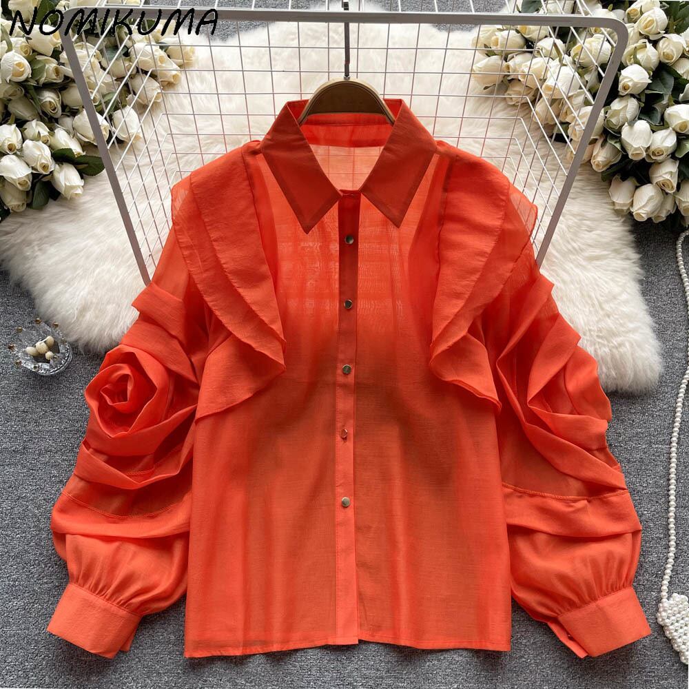 ノミクマ 2022年秋 カジュアル ターンダウンカラーブラウス フリルパッチワーク 長袖シャツ ロング オータム 秋物 kor52942590554