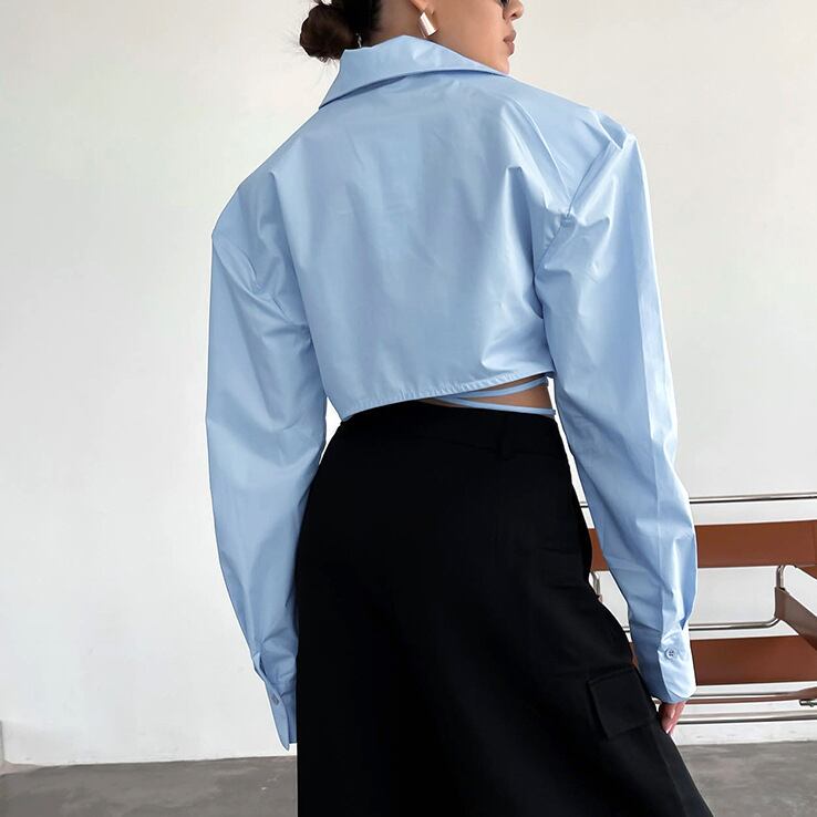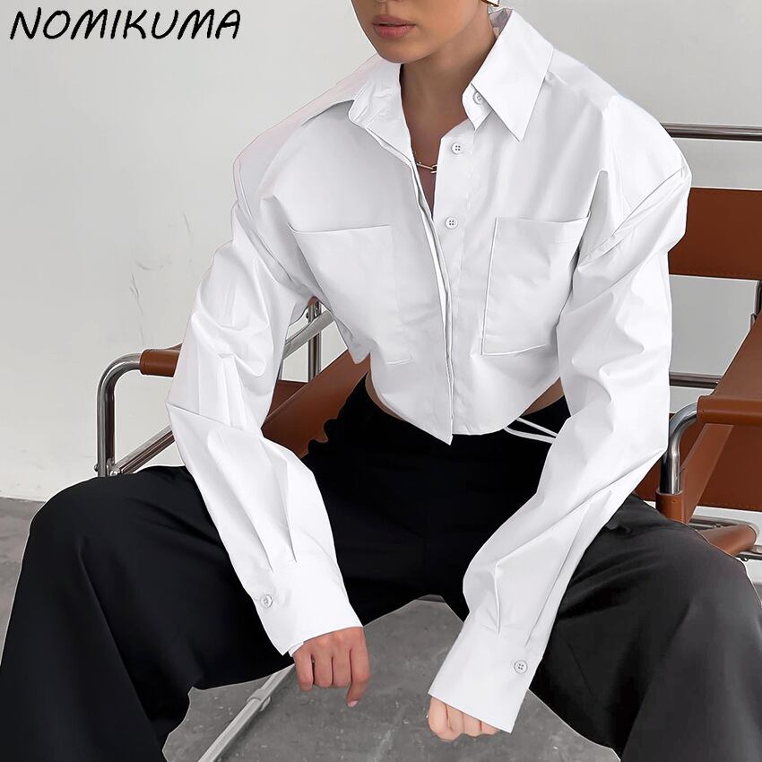 Nomikuma ウエストショート女性トップス因果ポケット長袖ターンダウン襟ブラウスシャツ 2022 秋 ロング オータム 秋物 kor2395698001