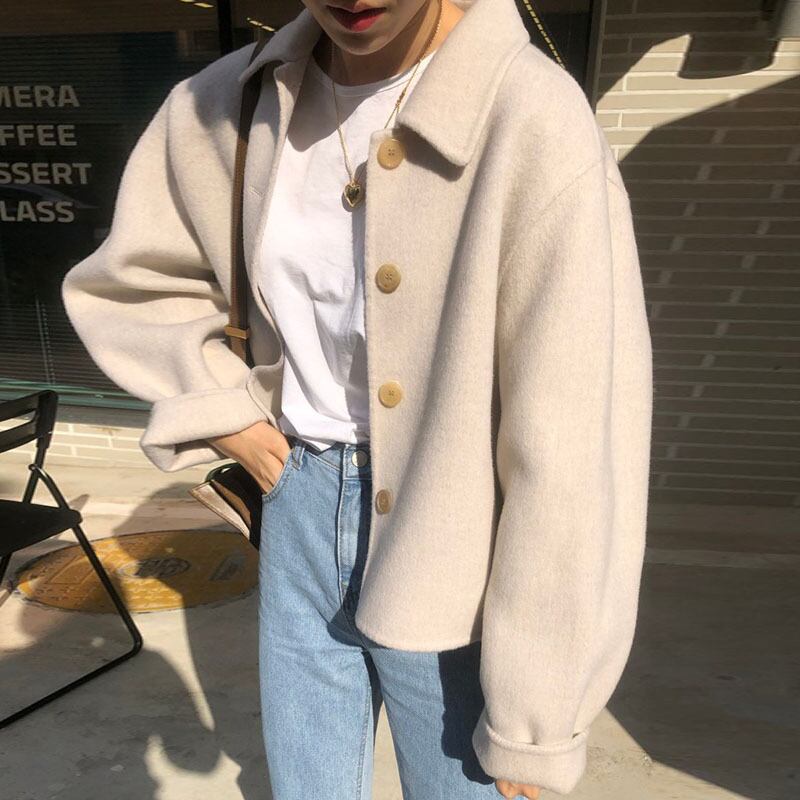 Nomikuma 2022 秋冬ウールジャケット女性長袖ターンダウン襟コート因果ショート生き抜くトップス ロング オータム 秋物 ウィンター 冬物 kor97116388024