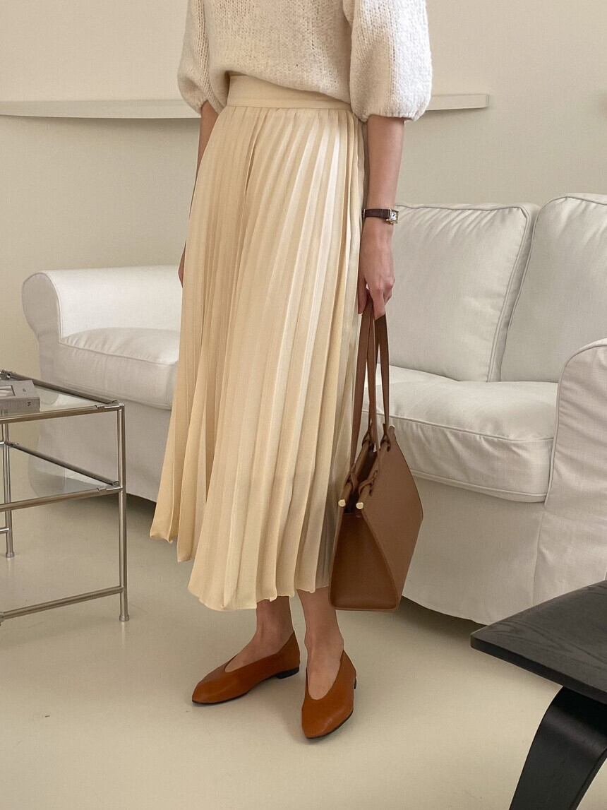 Nomikuma シックな秋弾性ウエスト女性スカート因果無地 A ラインプリーツスカート段 Faldas モーダ 2022 エラスティック 伸縮 オータム 秋物 Aライン ソリッドカラー kor51849363017