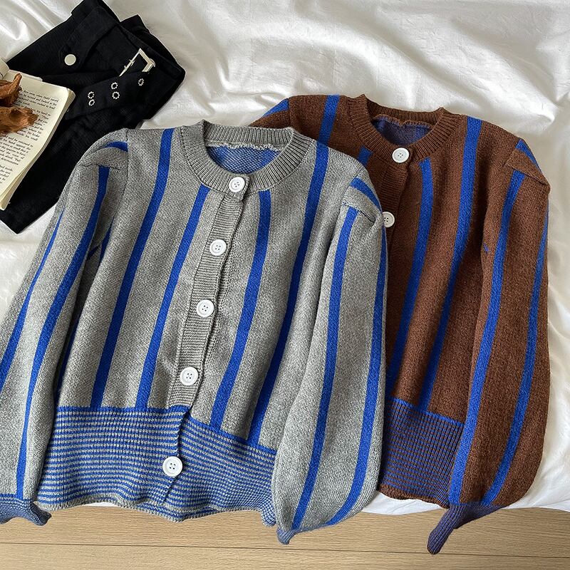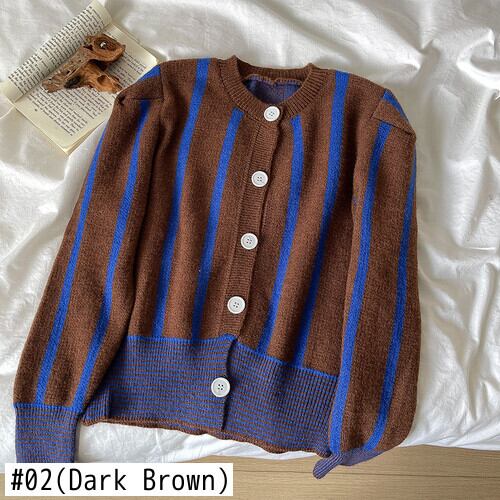 Nomikuma ヒットカラーストライプニット女性カーディガン秋冬 2022 セーターコート因果長袖 O-ネックニット ロング オータム 秋物 ウィンター 冬物 kor38640818125